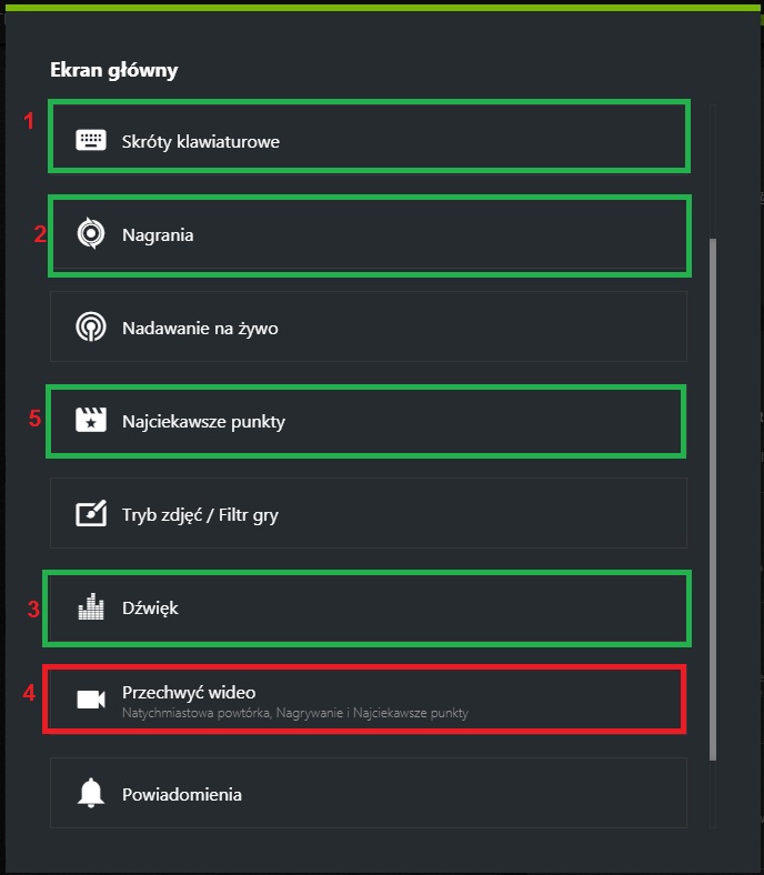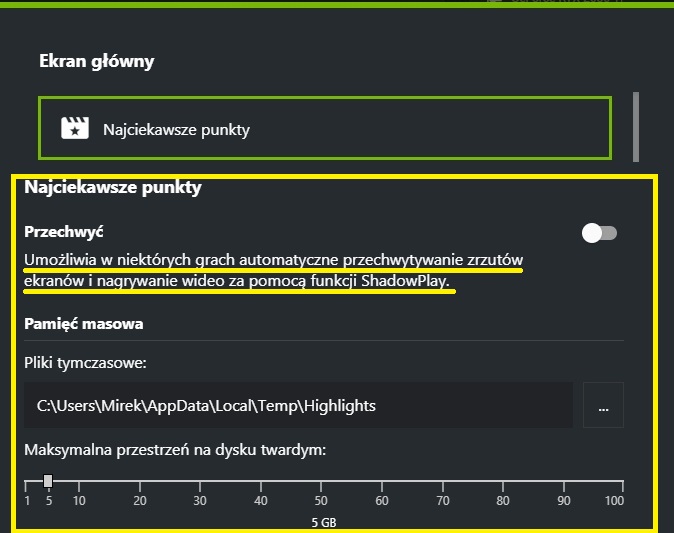 5. Ciekawe punkty. Wiem, że Jacek z tej funkcji ShadowPlay korzysta, u mnie wyłączone - sam decyduję kiedy program ma zapisać film.