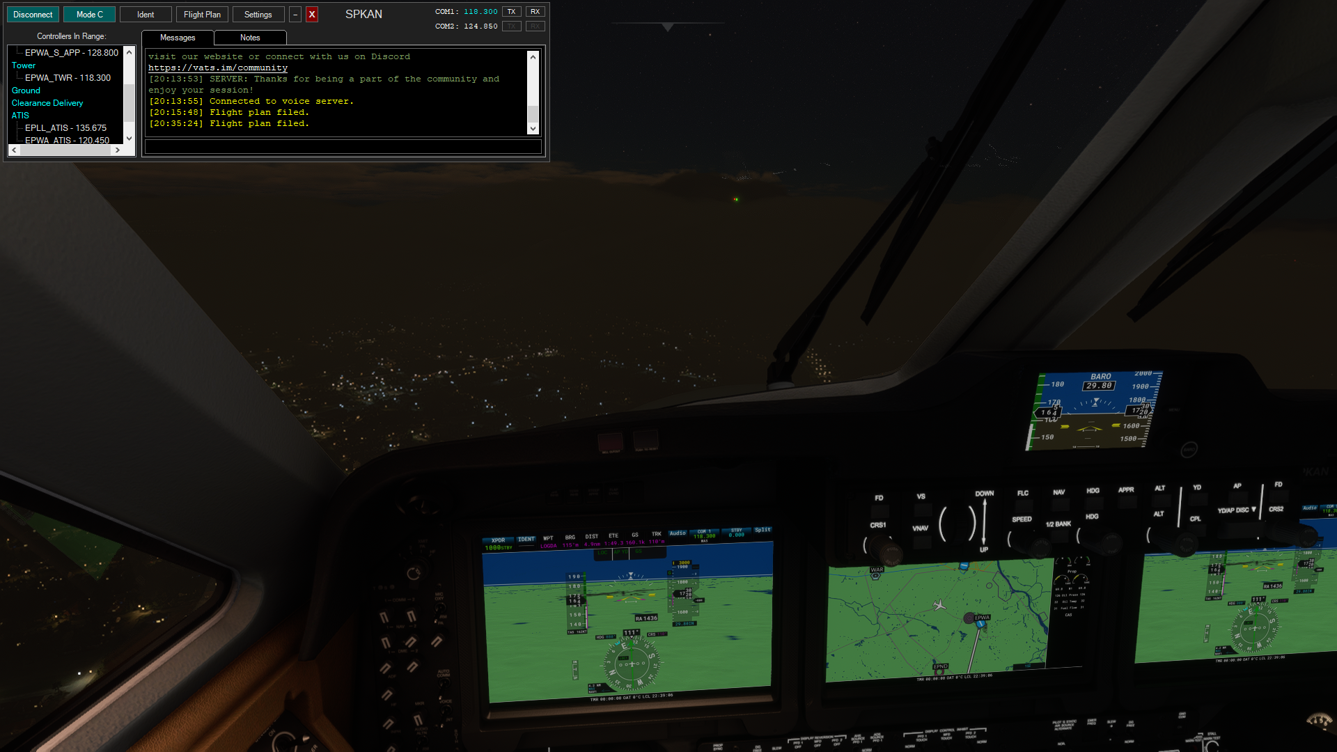 -VATSIM. Zacząłem sobie tam latać. Fajnie tak z kontrolerami na żywo polatać. Fabio zrobił kiedyś stream z takim jednym Garym z UK co był kontrolerem na bardzo spokojnym obszarze. Jakieś wysepki Jersey między UK i Francją żeby jak ktoś chce po lekku wejść w świat VATSIM to bez dużego ruchu i z kimś znajomym kto wie, że będą głównie piloci robiący pierwszy lot no to wziąłem i poleciałem :D Poza mną się ino jeden jeszcze odważył :lol No i fajnie było, będę latał często. No ale żeby korzystać z większych lotnisk, które zwykle mają kontrolerów lotu to trzeba mieć raczej szybszy samolot. Zwykle to większe odrzutowce, ale taki Beechcraft King Air 350i też może być jak nie będzie masywnego ruchu :)