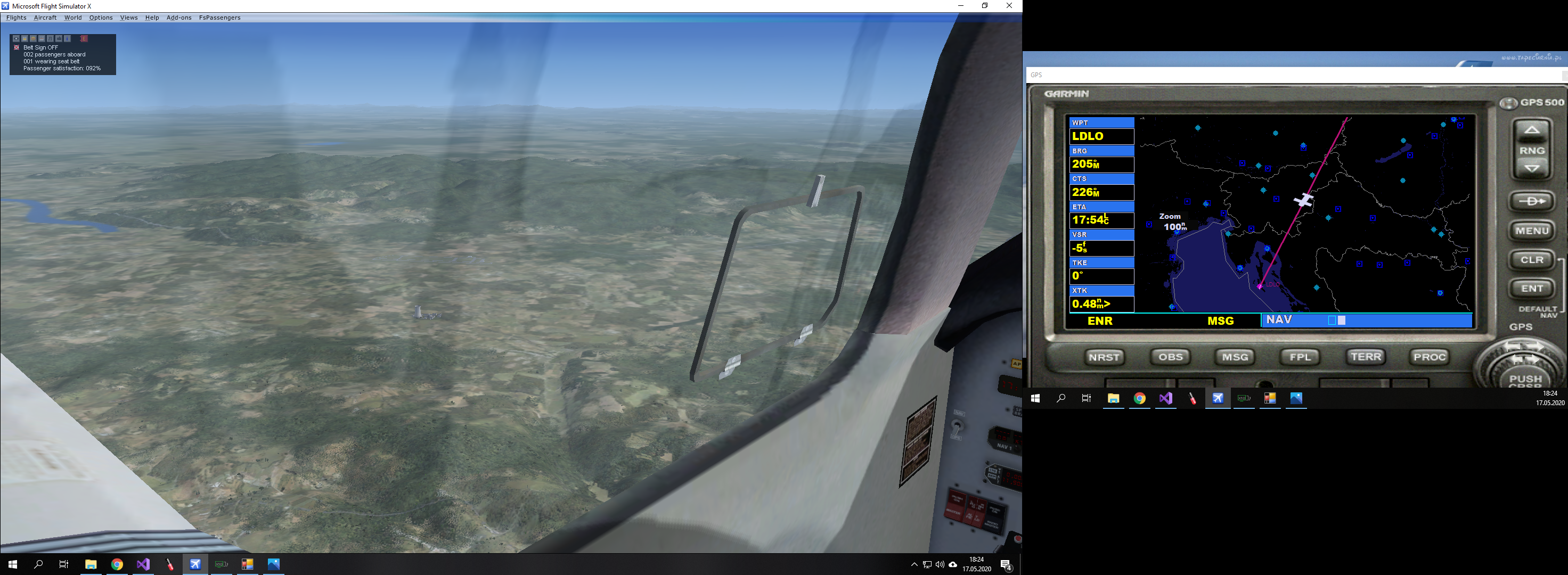 No to ustawiłem kokpit, podłączyłem wszystko, wczytuję grę w miejscu gdzie ostatnio skończyłem czyli obok pasa 2 na lotnisku LDLO i... jestem na środku wody