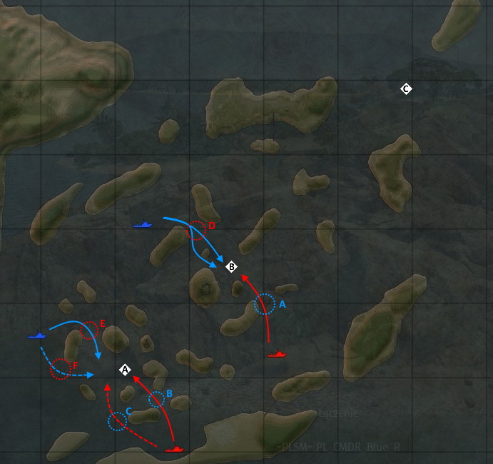 Nie każda mapa ma taki punkt, ale przyjrzyjmy się kilku mapom, gdzie takie punkty można znaleźć. Postaram się za jakiś czas omówić wszystkie. Mapy prezentowane są w wersji Dominacja Morska w wersji, gdzie mogą wejść też niszczyciele. Zacznijmy od tej z Qbikiem.