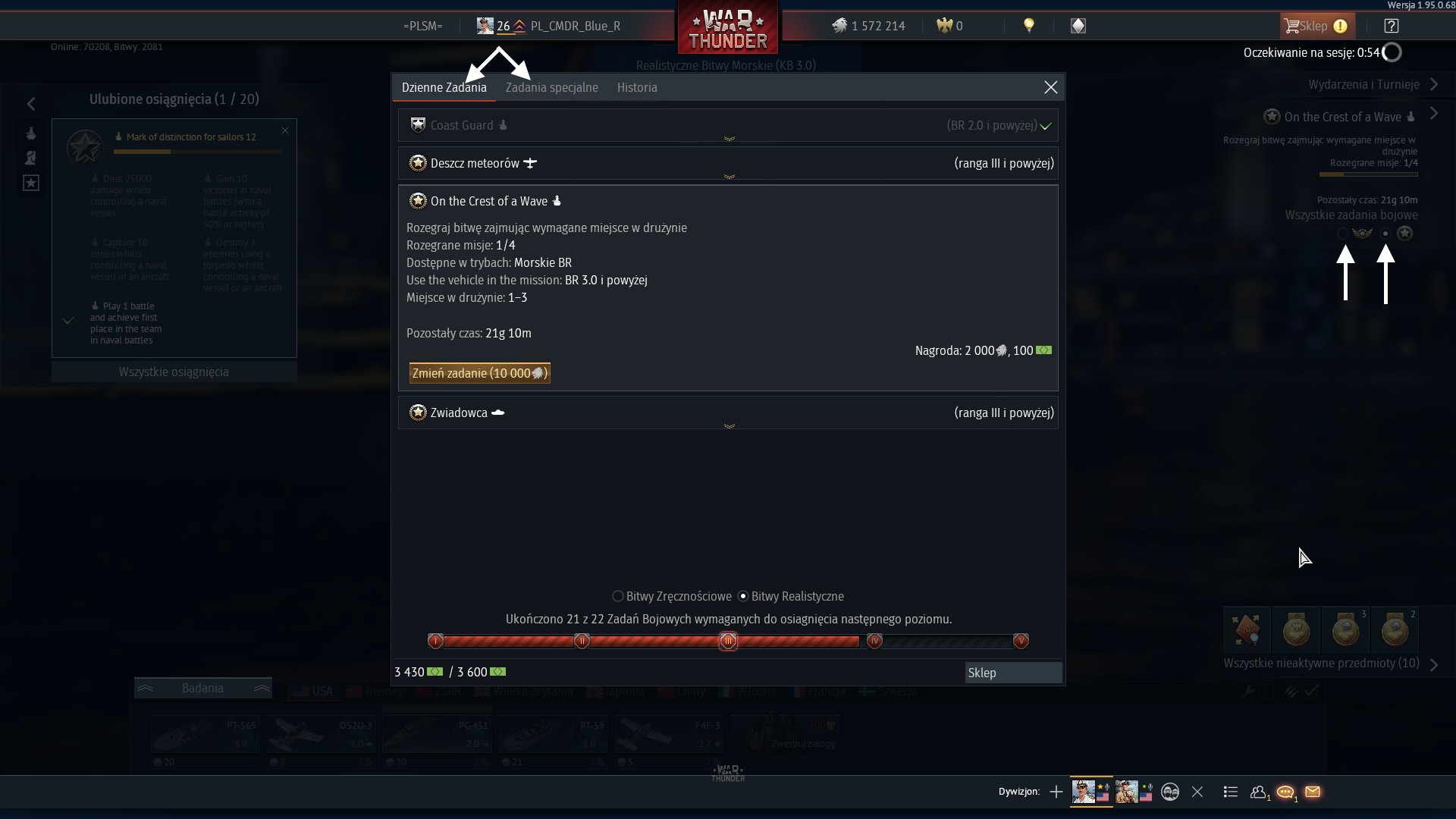 4) bierzemy zadania specjalne. Po pierwsze, aby móc kupić okręty premium musimy odblokować 12 medali = wykonać 12 zadań specjalnych. Po drugie... będziemy wiedzieć, co mamy robić