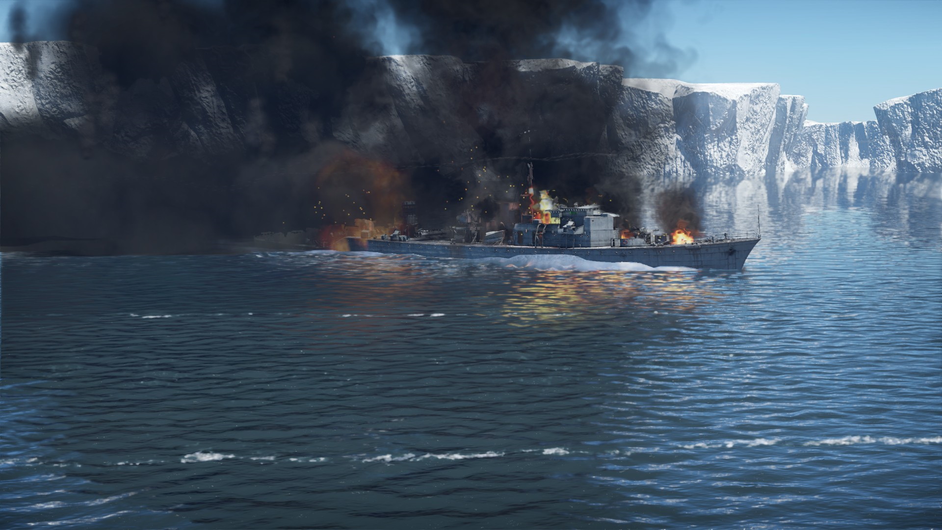 Czołowy niszczyciel wrogie eskadry znalazł się pod huraganowym ogniem....