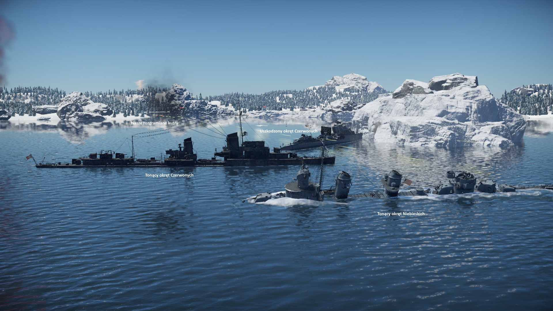 Na wroga nie trzeba było długo czekać. Zbliżaliśmy się do wejścia do portu, gdy nasze kutry pilnujące przejścia dostały się pod ostrzał, a po chwili zza oblodzonych skał, wyłonił się pierwszy niszczyciel...