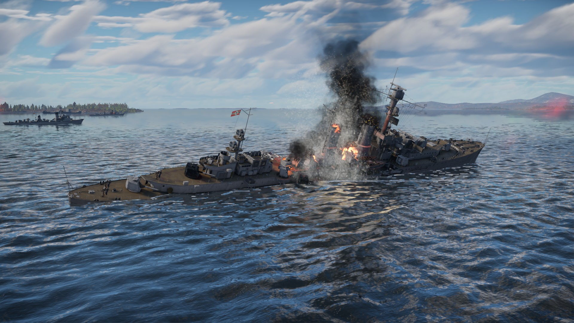 Zostawiając za sobą większość amunicji oraz płonący niszczyciel...