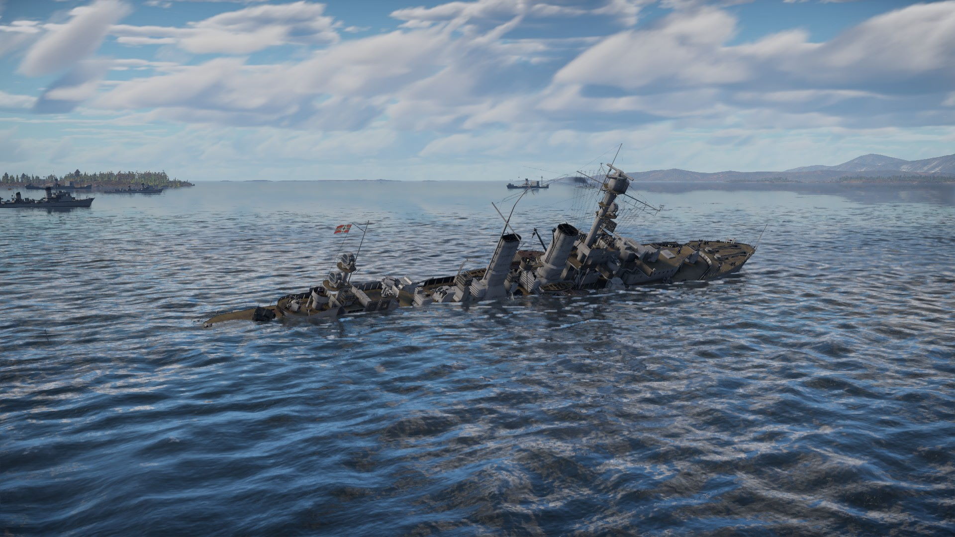 Po rzuceniu torped, zauważyliśmy, że w pobliżu floty toczył się mocno uszkodzony stary niszczyciel...