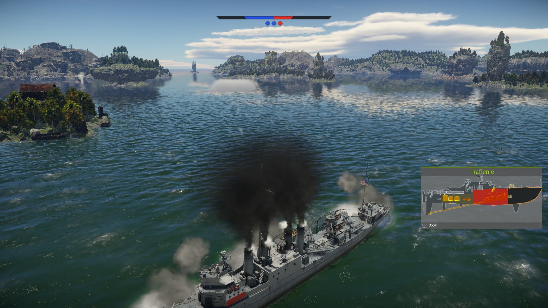 USS Barker nie wytrzymał tego ciosu, a przeciwnik na pełnej mocy ruszył zajmować punkt B.