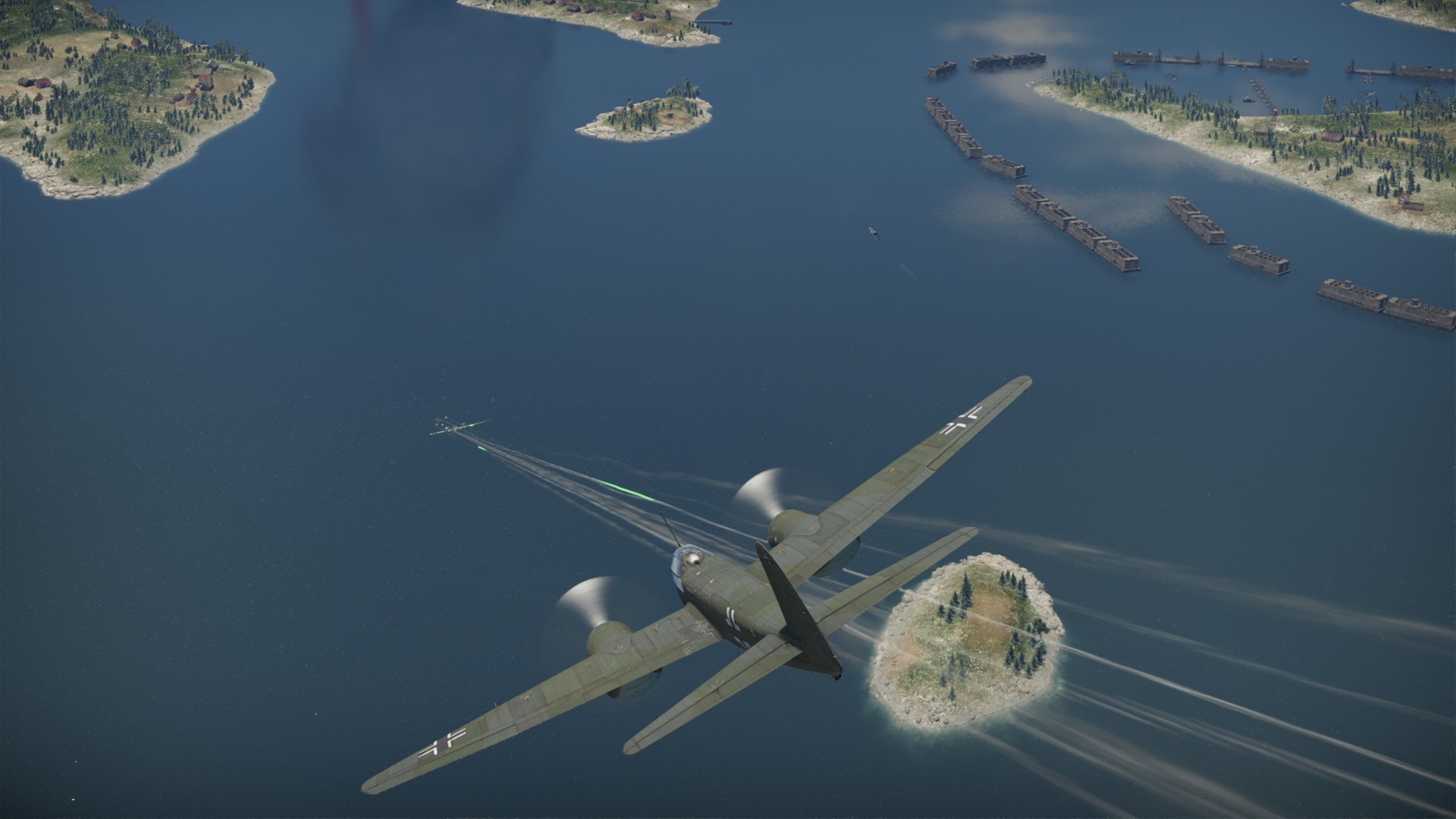Jednak chyba wybór maszyn był zły... Nie dlatego, że bombardowanie idzie źle, ale jakoś następuje coś dziwnego... Pierwszy pokonany wróg, to nie był okręt, ani kuter... To był bombowiec Do17.... którego pilot uznał, że minął się z powołaniem i jest myśliwcem... Trafił swój na swego i zaczęliśmy regularną wymianę ognia...