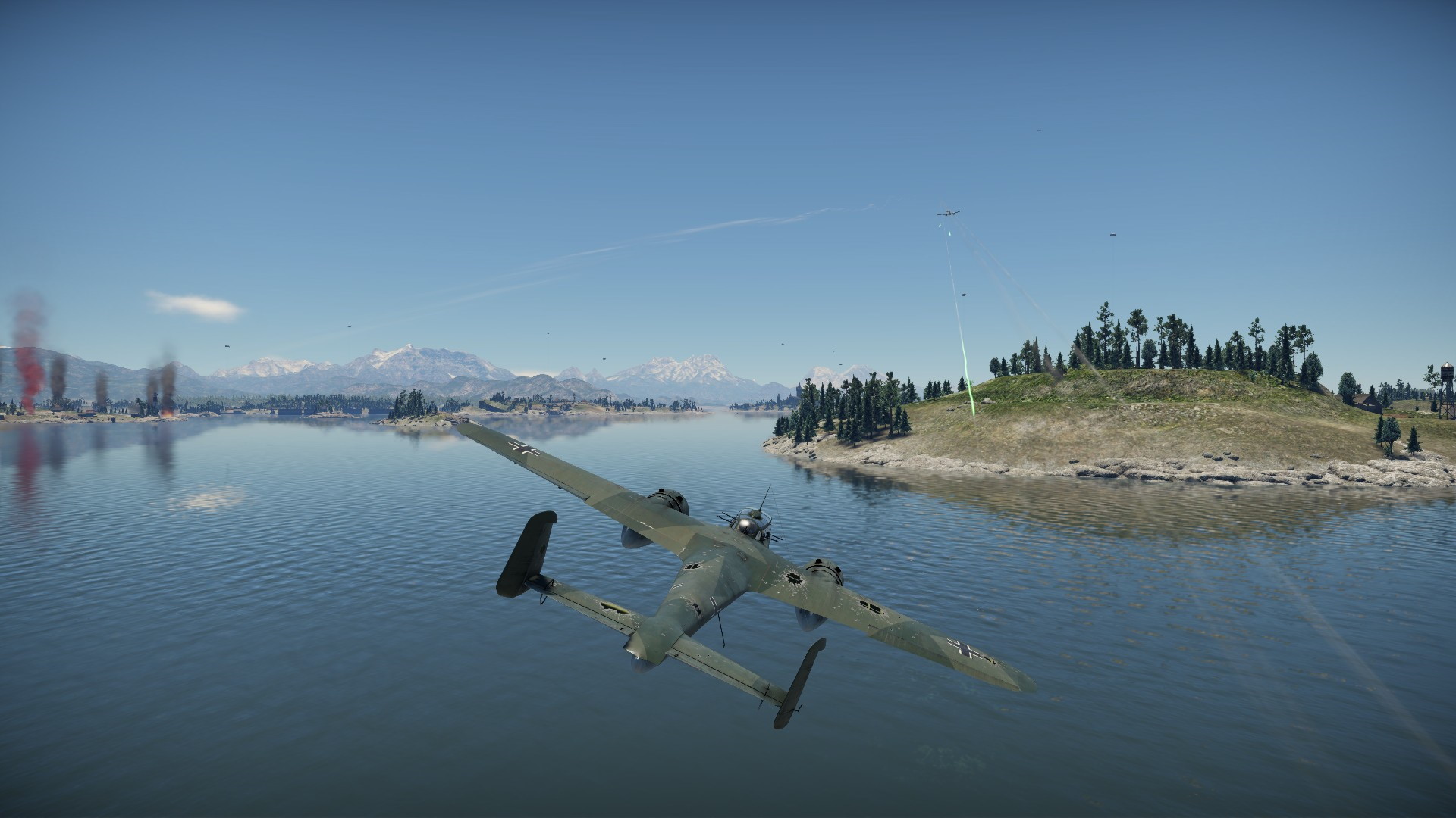 Ja wyeliminowałem mu 1 silnik, on mnie zero. I gdy wracałem do bazy po nowe bomby, spadł do morza...