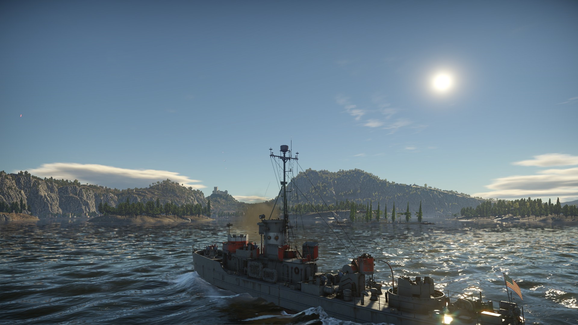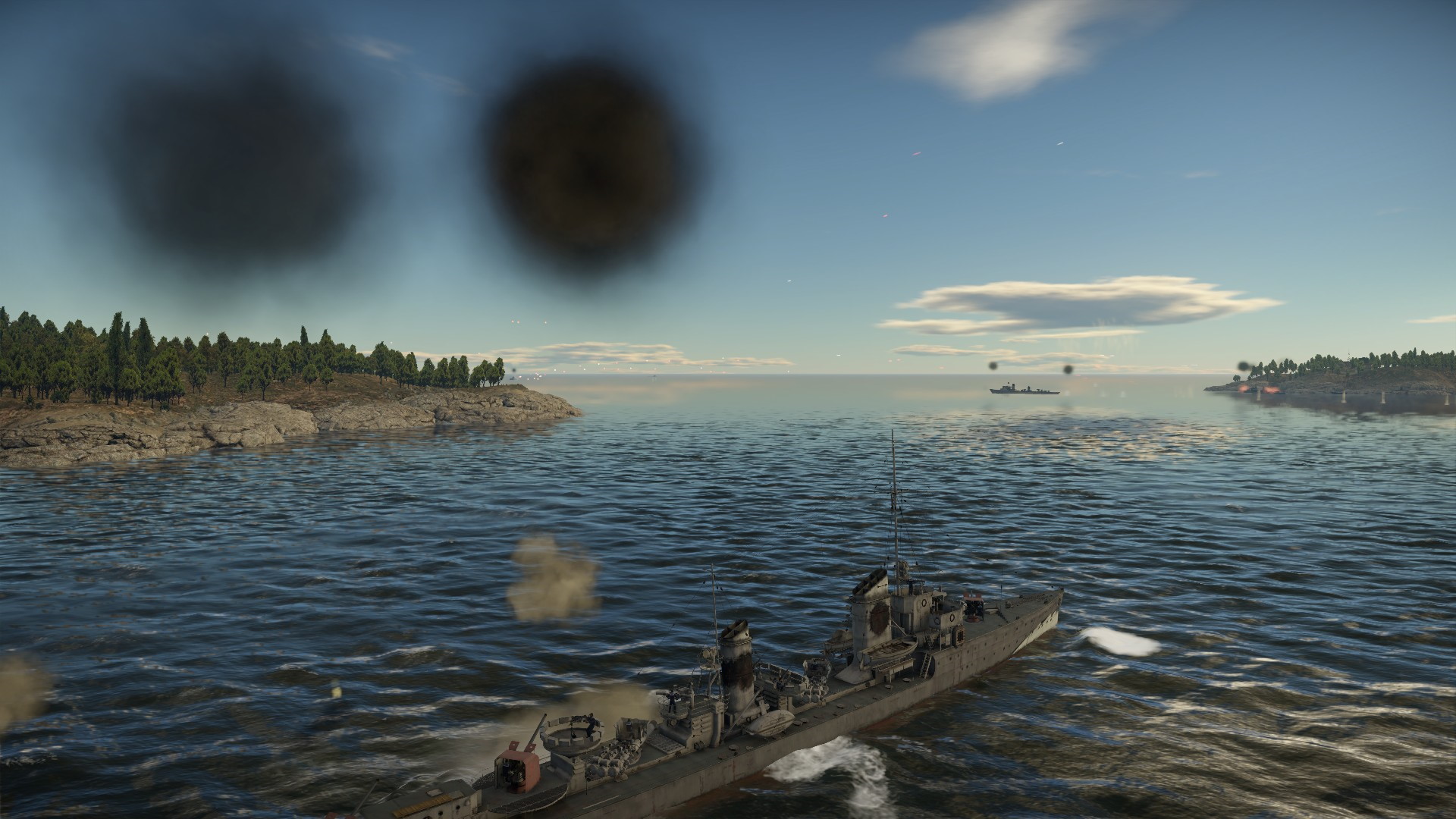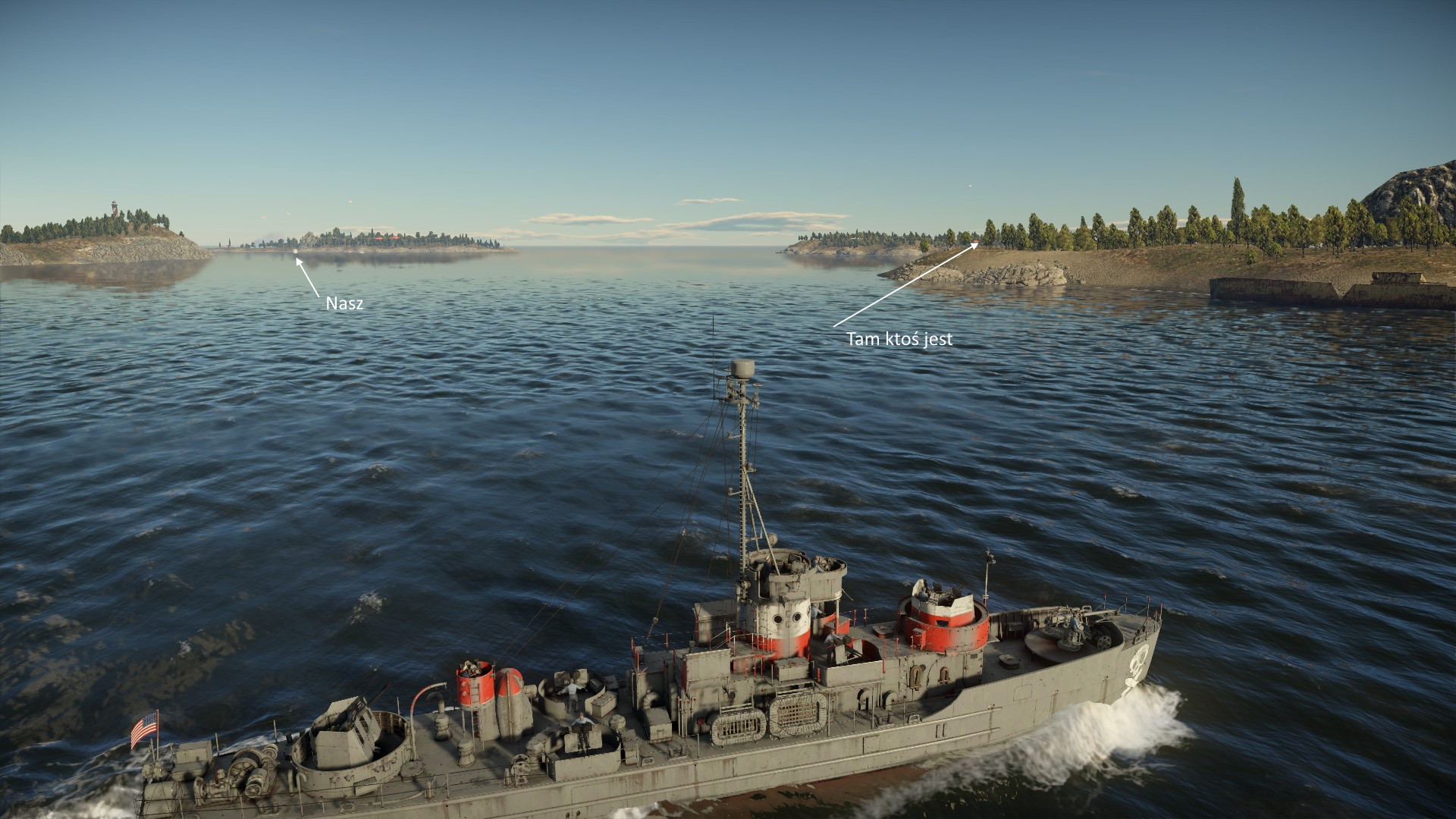 Jednak wiedzieliśmy, że zaraz za tą wyspą czai się wróg... Działa były w gotowości... I wreszcie pierwszy dozorowiec wychylił się... Pewny, że po pokonaniu pierwszej fali mają chwilę odetchnięcia...