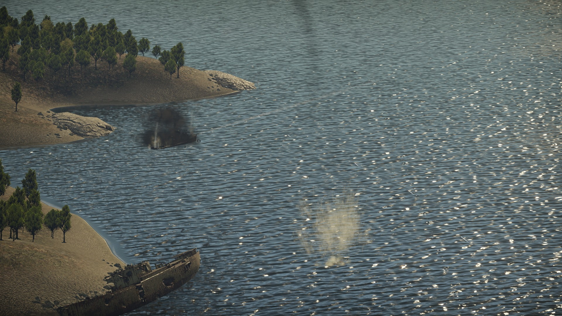 Chociaż to mu się udało, to oprócz torpedy do wody spadł i on i jego odstrzelone skrzydło...