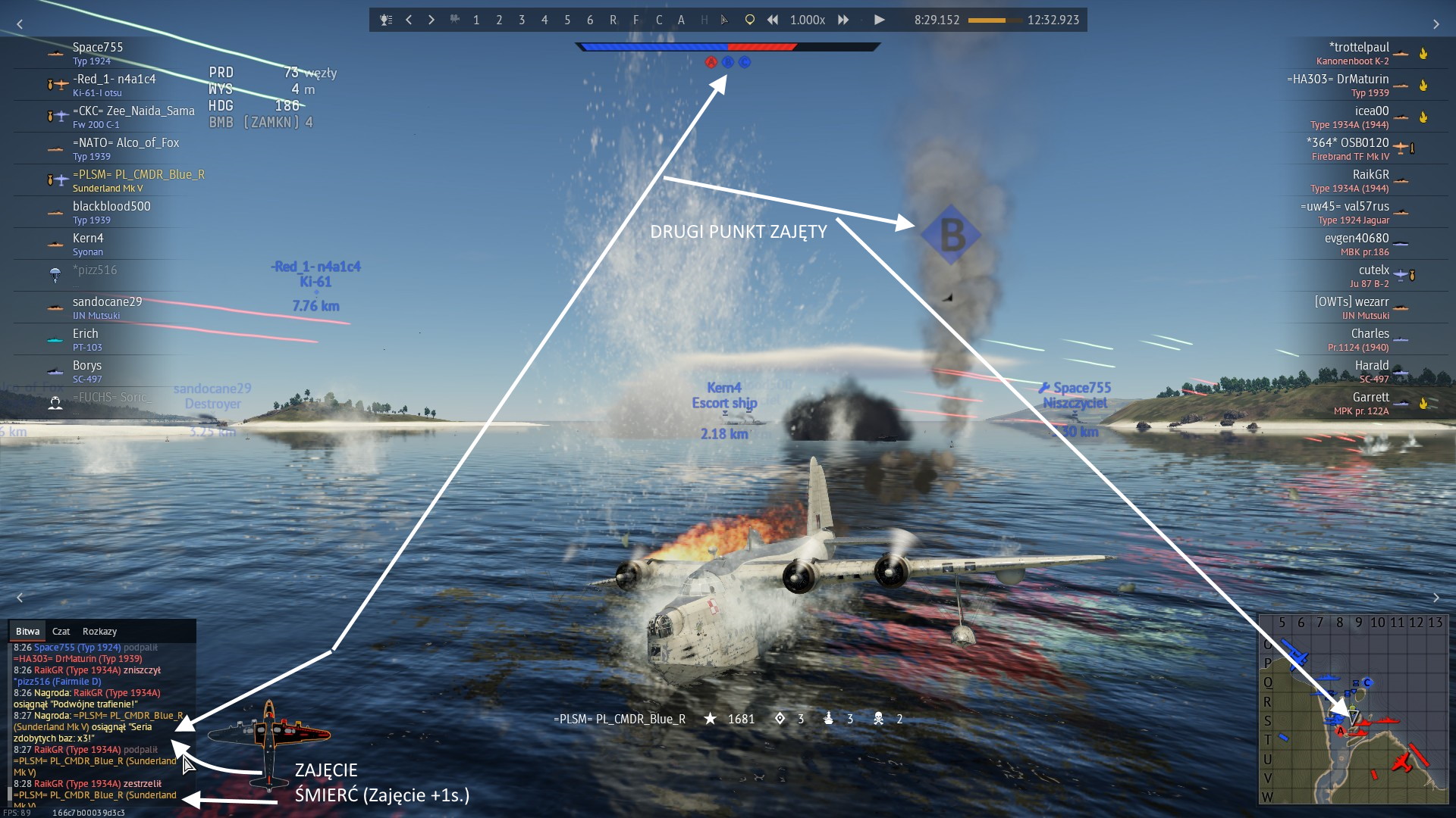 Metoda dość ryzykowna... Zanim torpeda trafi, wodnosamolot może nas zestrzelić. Zaletą jest fakt, że wodnosamolot nie przetrwa nawet pobliskiej eksplozji torpedy.