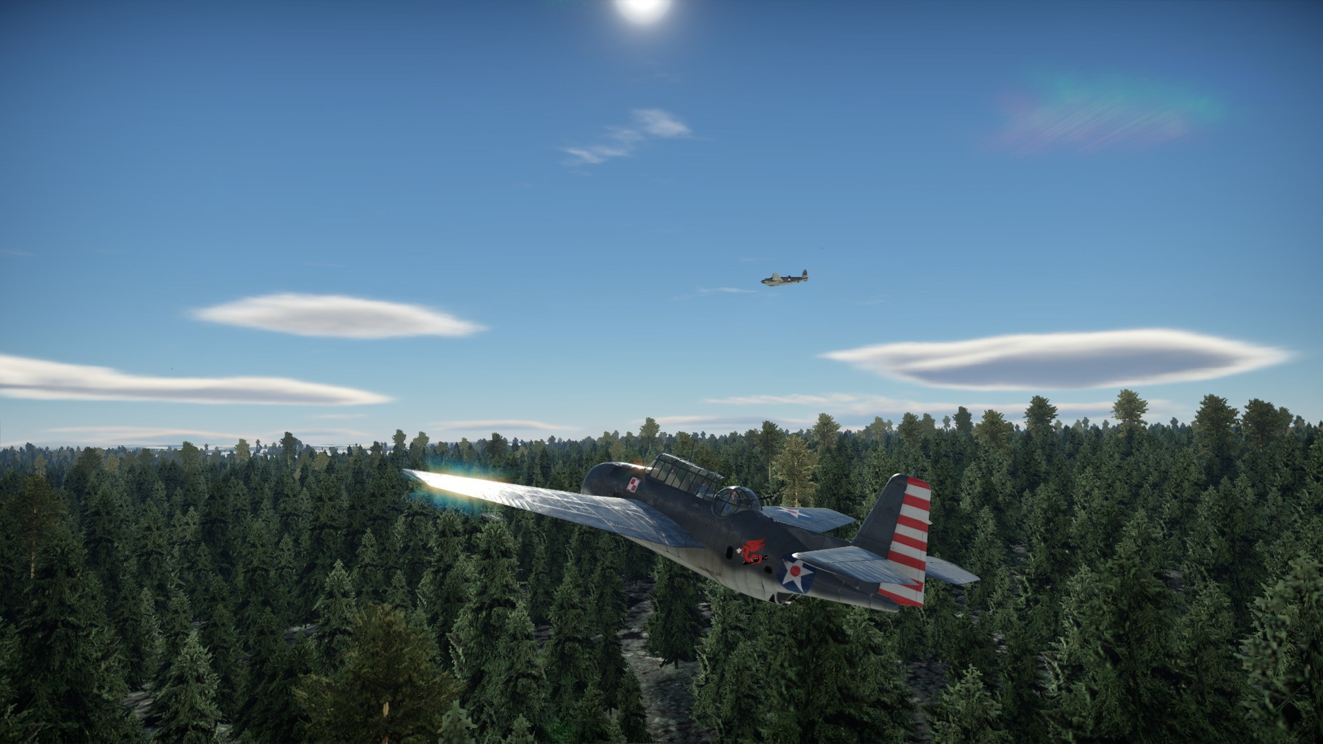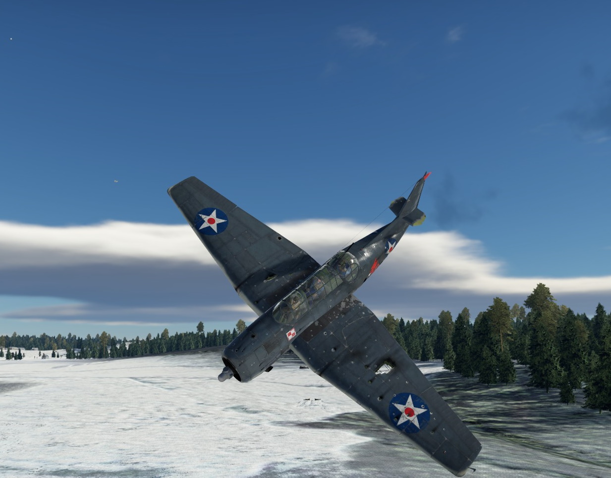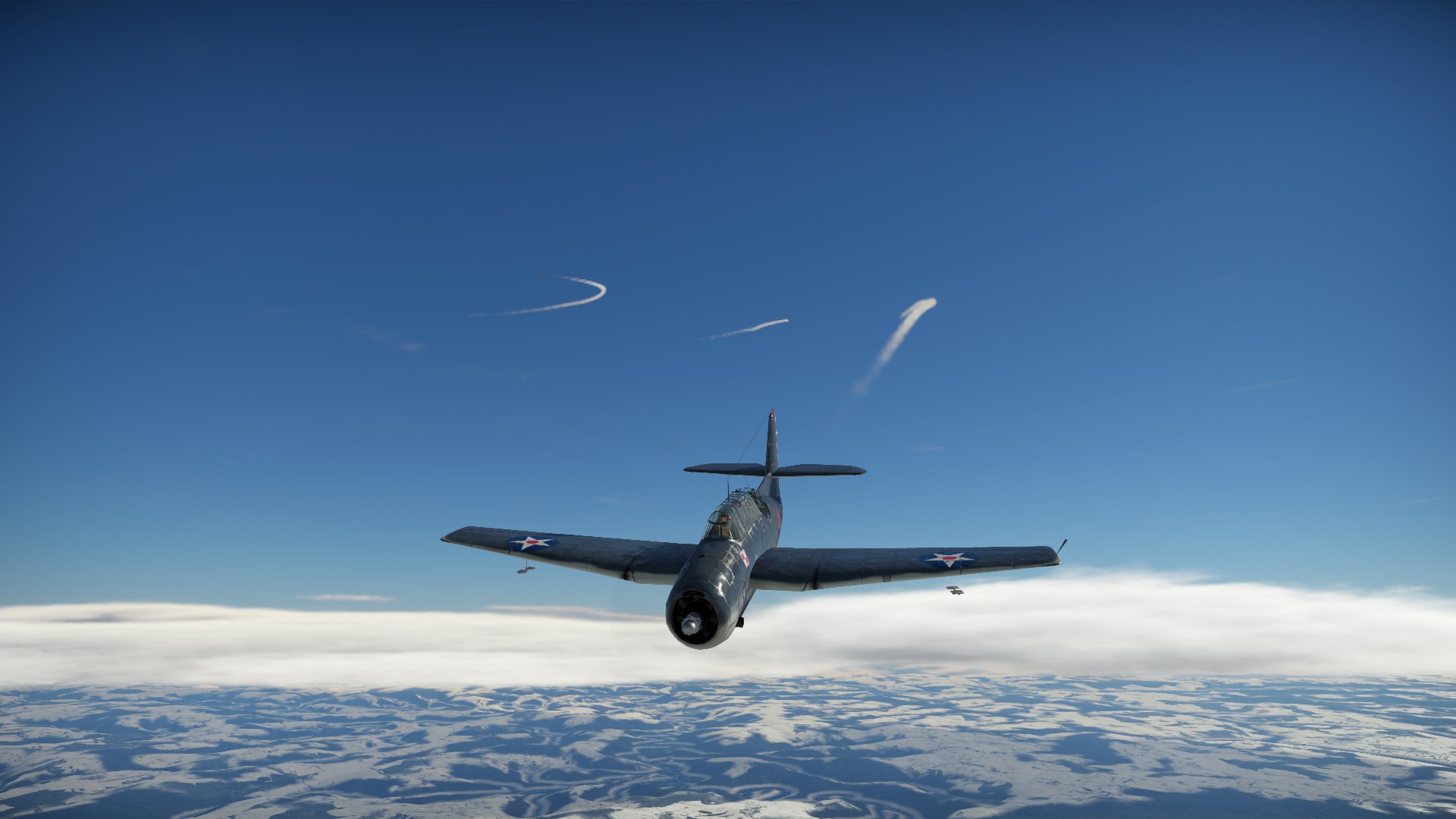 Przewaga prędkości wroga, spowodowała, że na chwilę znalazł się przed nami. Nie mogłem przepuścić tej okazji i zaatakowałem go z KMów, niestety, ociężałość TBF nie pozwoliła na więcej efektu, niż pokazanie wrogowi, że jesteśmy zdeterminowani walczyć.