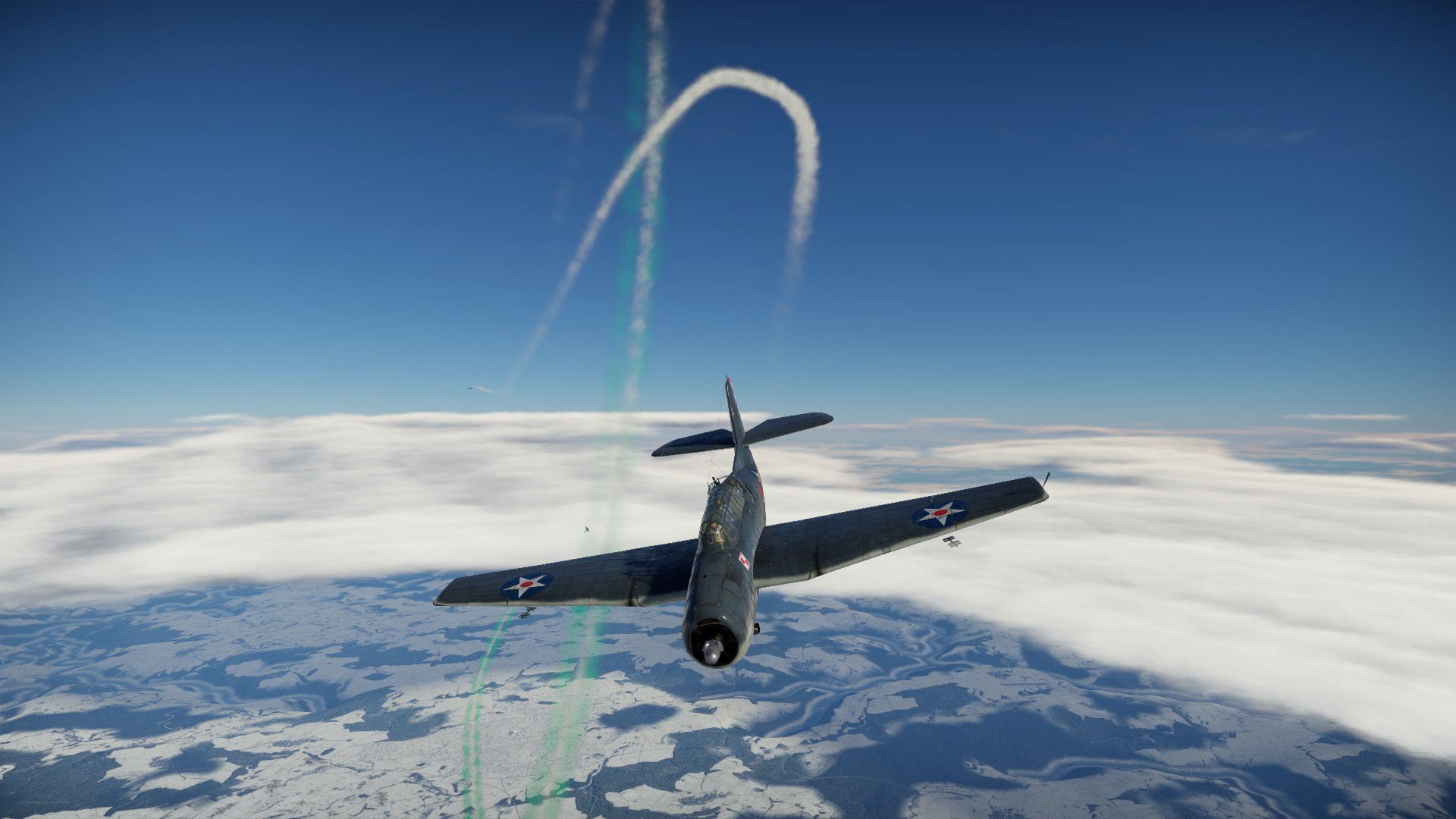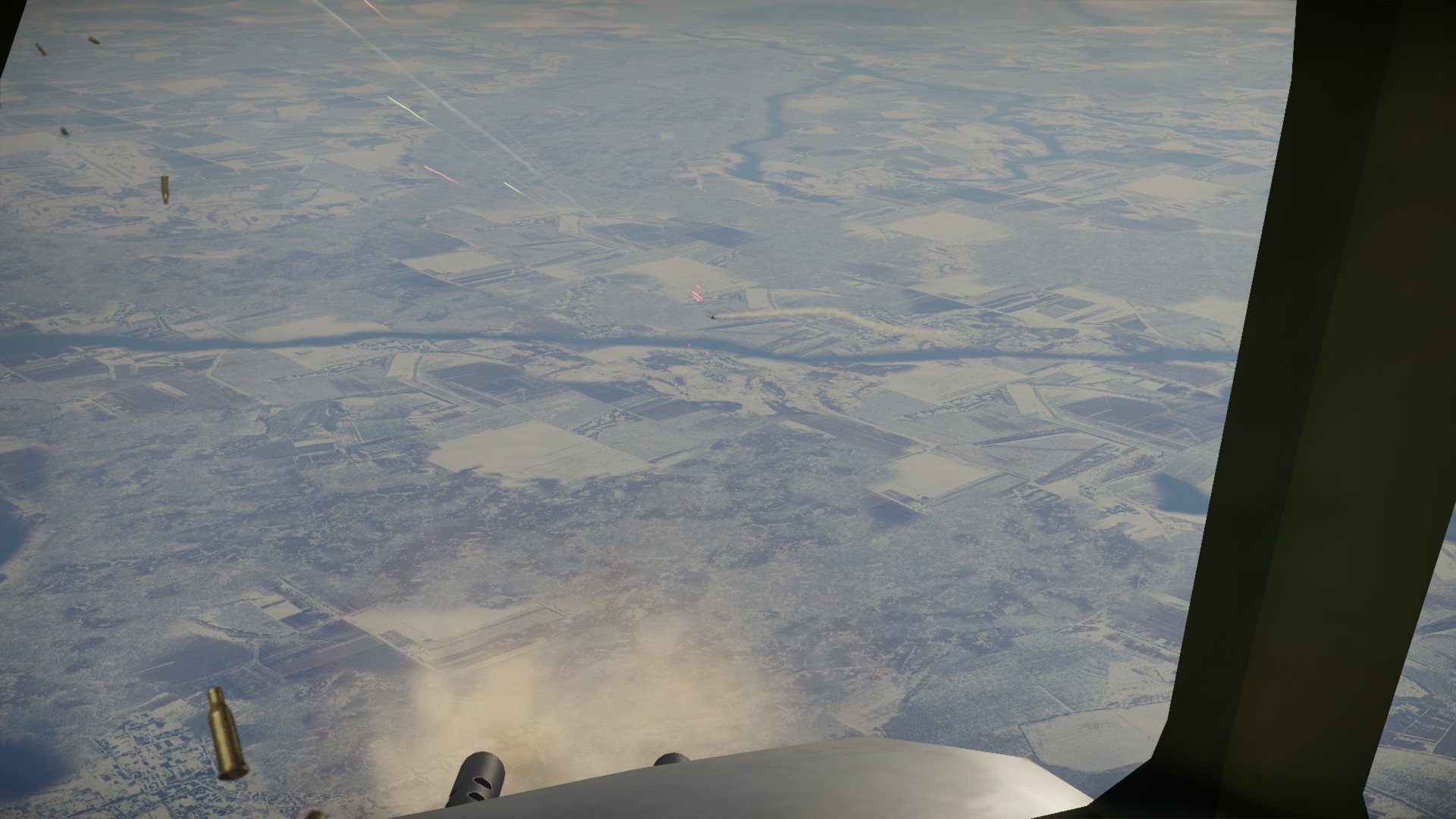 Zawróciliśmy i Pete otworzył ogień, a prawie natychmiast wrogi myśliwiec wypuścił dym... zielony. Albo trafiliśmy w zbiornik w kolorowym gazem, albo wrogi pilot chciał pokazać, że dla niego to będzie tylko zabawa.