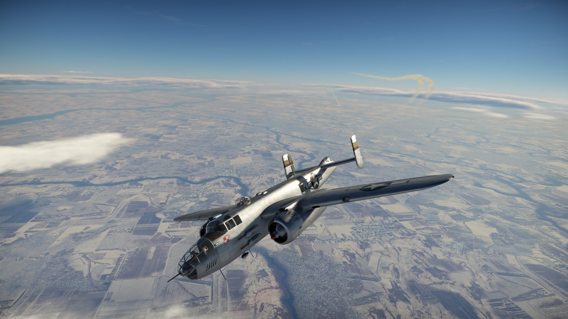 Leciałem samotnym B-25 nad wykryty obóz wroga, eskorta została gdzieś z tyłu, tocząc zacięte pojedynki, gdy dwa czerwone myśliwce rozpoczęły atak.