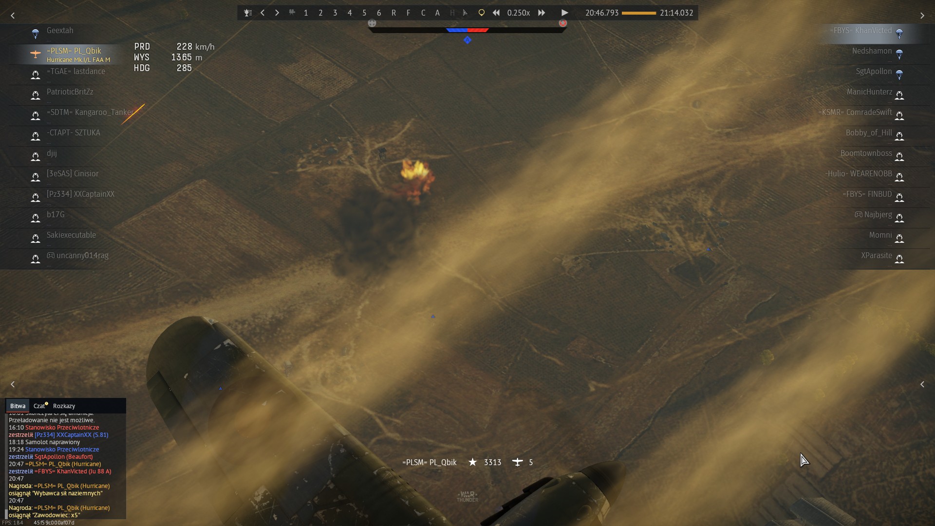 Wracając do bitwy odebrałem wiadomość, że wrogowi zostały trzy samoloty. Z daleka widziałem już dwa z nich. I tańczącego nad nimi mojego kumpla – kapitana „LastDance’a”. :lol