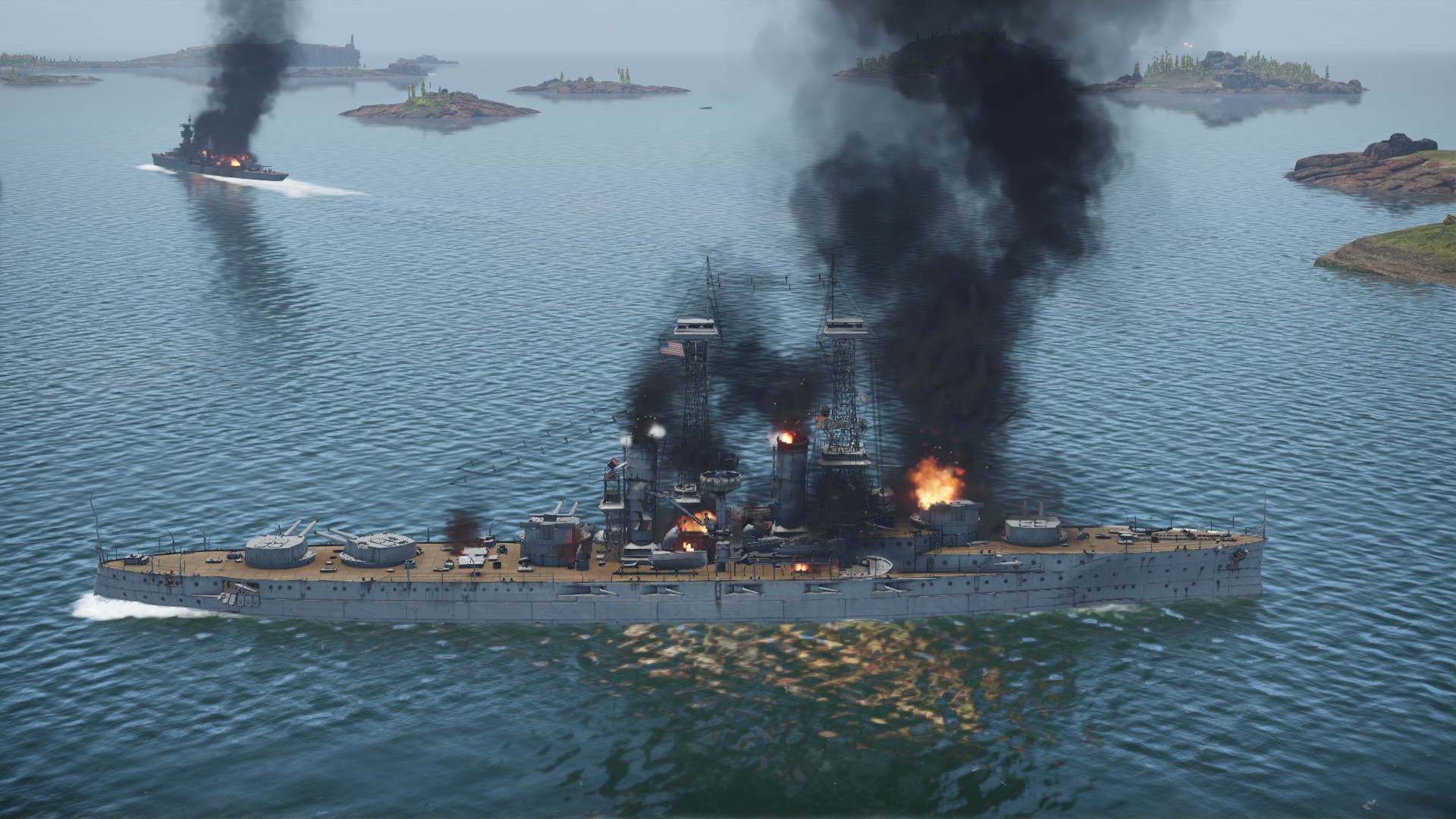 I jego pancernik... ostatni pancernik na polu bitwy... majestatycznie, nie niepokojony przez wroga, osunął się na głębinę...