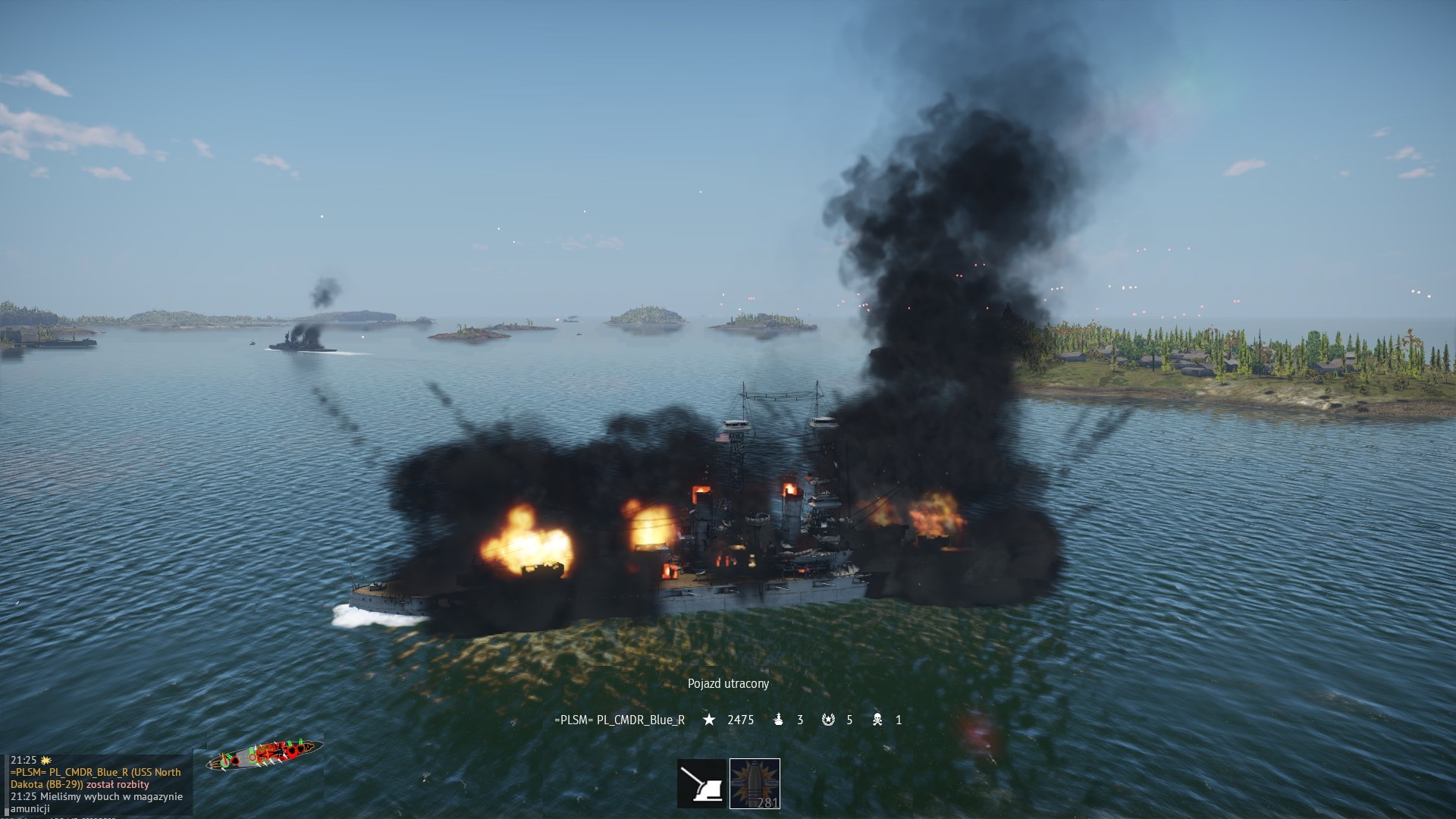 Zwłaszcza, że eksplozja amunicji wyeliminowała mój okręt z walki. Dowództwo przyznało nam 3 zatopienia i 5 asyst, ale i tak "znikający wróg" pozostawił pewien niedosyt...