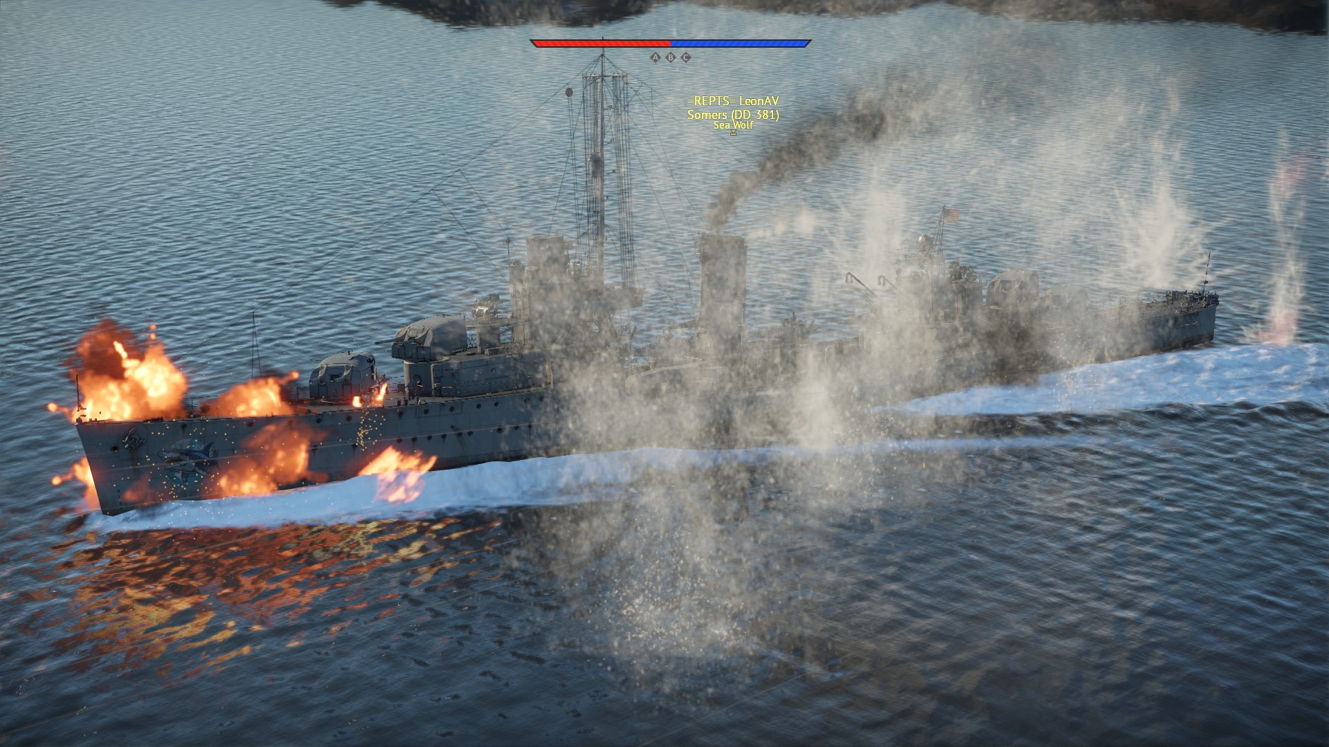Wróg też wykonał zwrot pokazując wszystkie działa. Salwy rozrywały pokłady obu okrętów... I niestety, lepsza celność T14 dała o sobie znać, posyłając USS Finka na dno...
