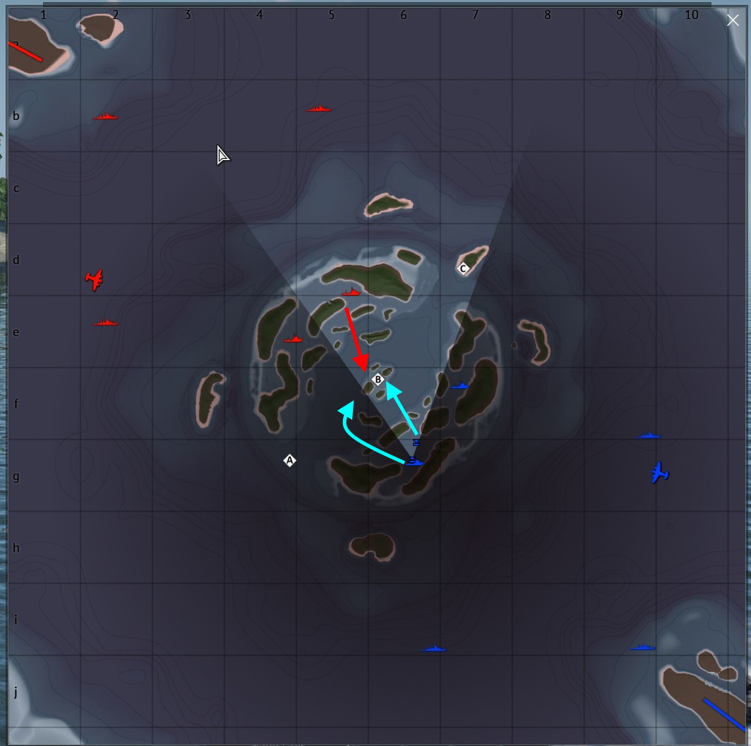 Polem bitwy znów była południowa strona Fiji, ale tym razem atakującymi byli tylko Japończycy. My postanowiliśmy użyć sprawdzonej taktyki, natomiast wróg postanowił to skontrować rejsem w kierunku C i zwrotem na B.