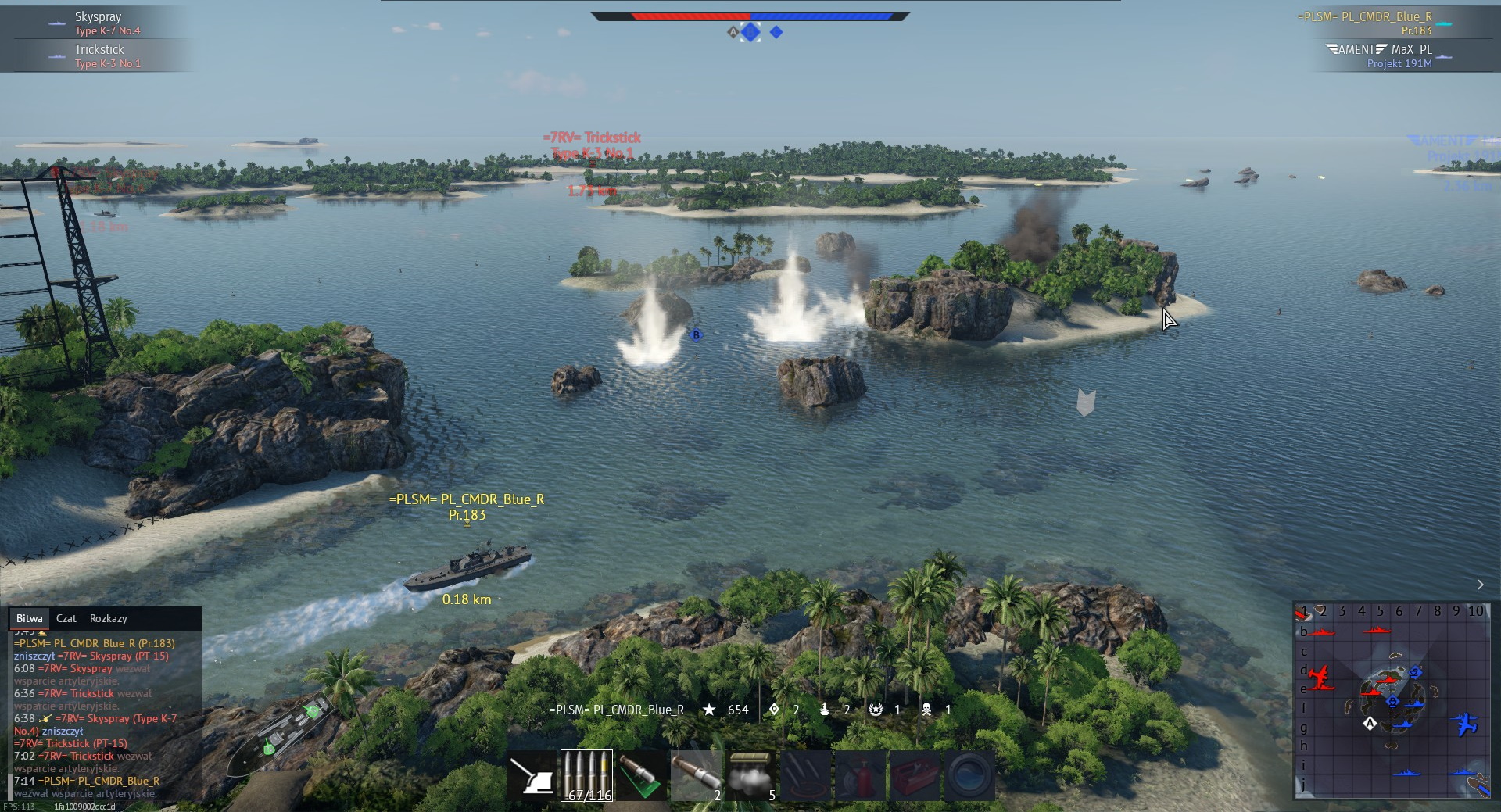 Do boju stanęły trzy Pr 1124. Dwie PLAMu i jedna, uszkodzona, czerwonych sił, starająca się zająć punkt B... [W tym miejscu replay ze strony jest ucięty]. Nieszczęśliwie dla wroga Maxowa Pr 1124 wyszła właśnie na pozycję do rozstrzelania wroga i tak dwie Pr 1124 Plamu zostały ostatnie na placu boju.