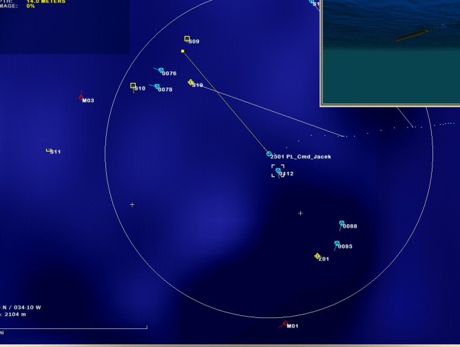 Po określeniu ogólnego kierunku ataku, płynąłem pod warstwą. W międzyczasie, jeden z naszcych Victorów poszedł na dno po trafieniu torpedą ze śmigłowca.