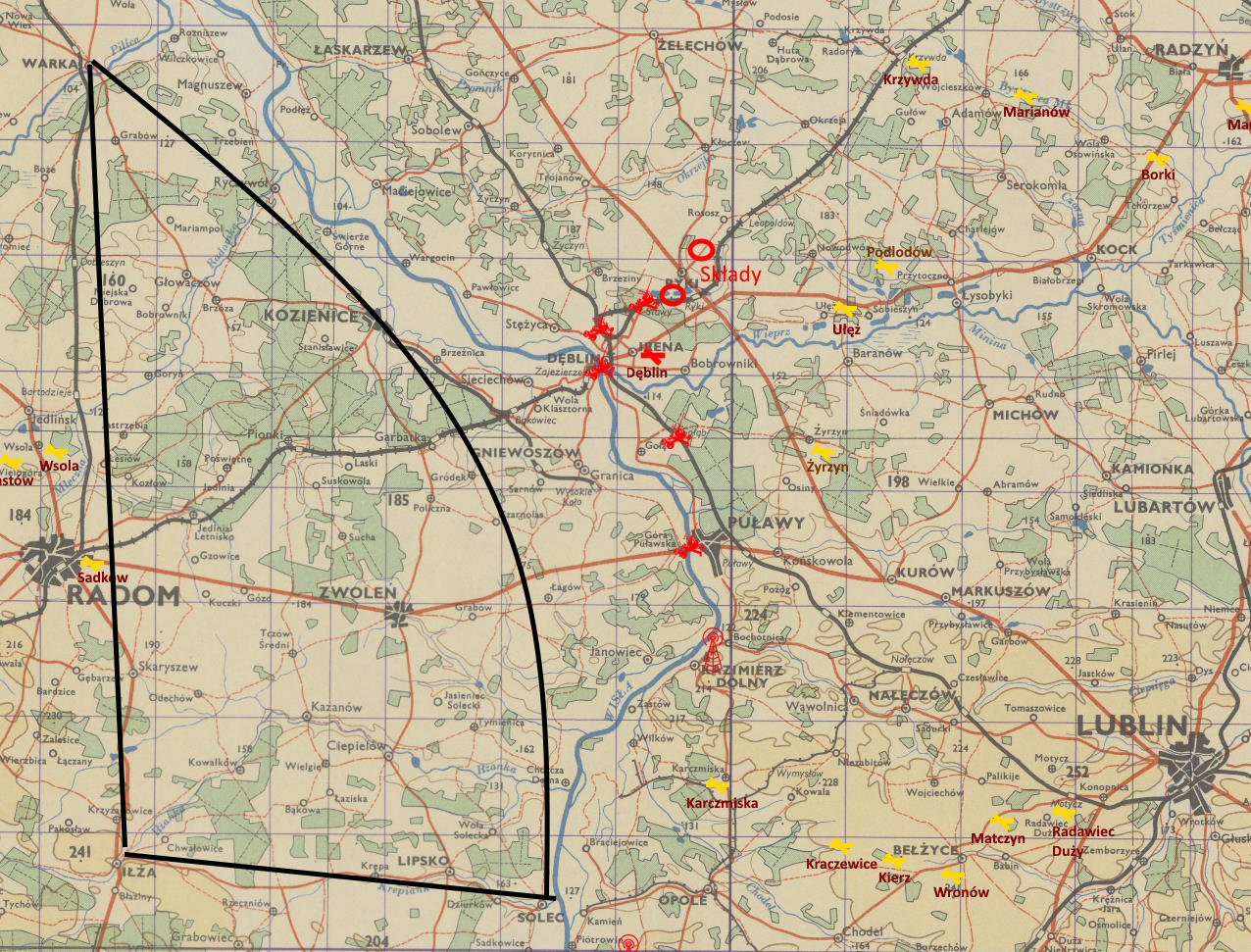 -Nasz obszar to Iłża-Solec-Warka... Trzymamy się z dala od Dęblina i Puław. Tam strzelają do wszystkiego, co tylko lata... A tu są trzy radiostacje. Kazimierz Dolny, Józefów, Garbówka. Pomogą wam z naprowadzaniem, jak coś zobaczą. Ja wracam najpóźniej o 12:30 i wówczas wy lecicie na patrol, a dyżur przejmie po was Ludwik. I na razie nic się nie zmienia. Pojedynczych nieprzyjaciół atakować, wyprawy zgłaszać, aby reszta dywizjonu uderzyła na nieprzyjaciela wspólnie z wami... Pytania, Andrzeju?