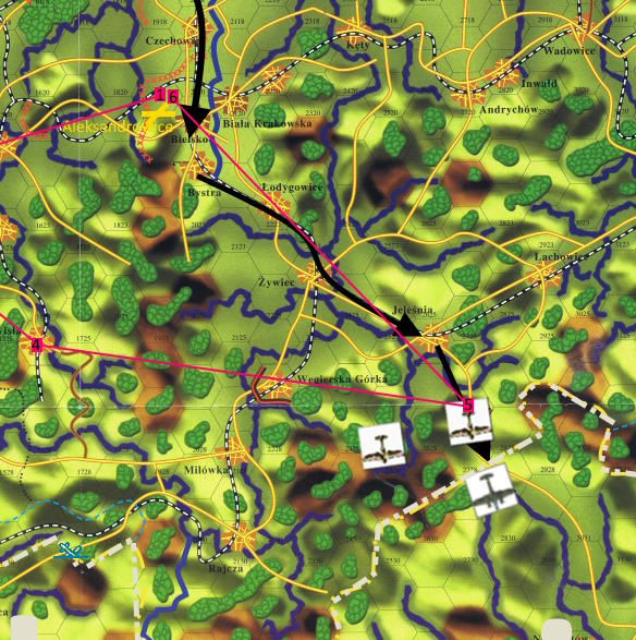 Do Kriegara: skręć na południe w kierunku Zwardonia. Ale utrzymuj kontakt wzrokowy ze mną. Jeśli Niemiec skręci to powinien wpaść na Ciebie.
