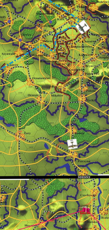 Samolot leciał wciąż nad Śląskiem i choć duszący się silnik próbował wszystkiego, nie był w stanie osiągnąć pełnej prędkości, jak na 5 kilometrach. Tymczasem radio podawało nową pozycję przeciwnika, która świadczyła, że ten jest za Mikołajem. Mikołaja to nie dziwiło. Zanim operatorzy przekażą pozycję do Aleksandrowic, a oni do niego, przeciwnik mógł odlecieć nawet kilkanaście kilometrów... Odległość znów malała....