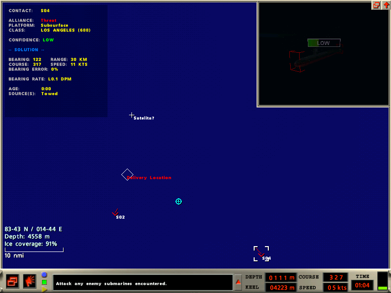 Sowiecka Akuła, która na burcie nosiła już znak zatopienia amerykańskiego OP pędziła mrocznymi wodami pod lodem, gdzie spadła satelita. Wywiad potwierdził, że zatopili tylko "dziką łasicę"... Okręt, co odwracał uwagę od właściwego okrętu szpiegowskiego... zdobyte dane mogą kosztować wielu towarzyszy życie... i Kapitan Finkov chciał się odegrać... I oto nadarzyła się okazja... Amerykański OP zbliżał się do satelity, a drugi prowadził go z oddali: