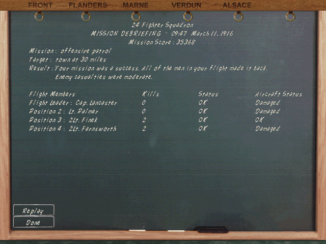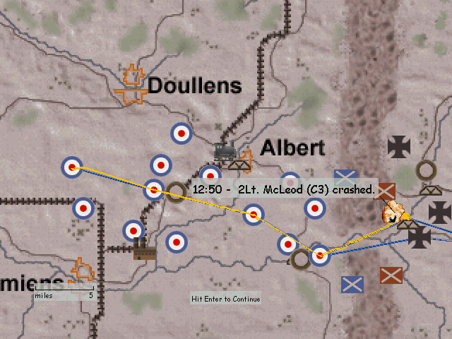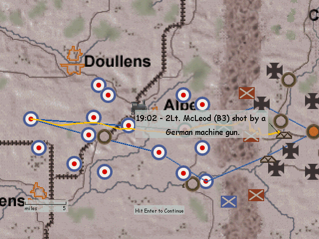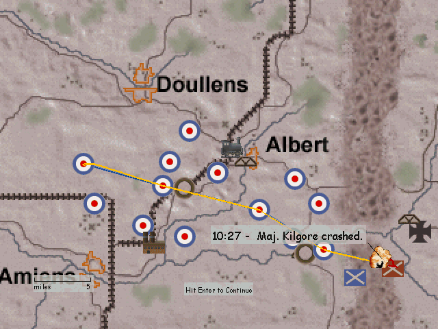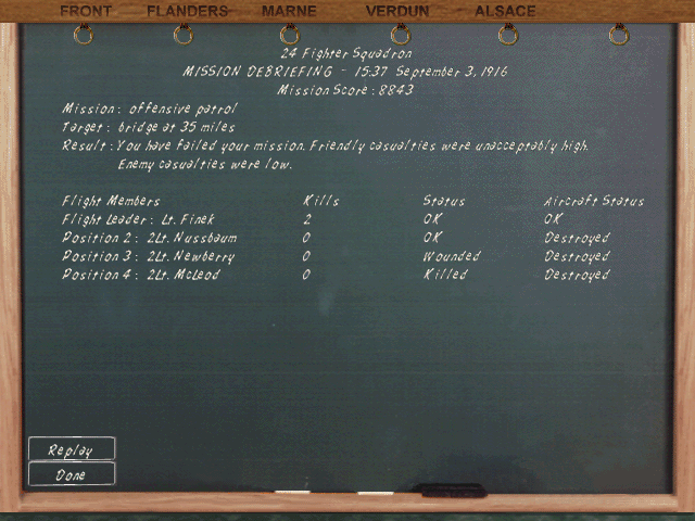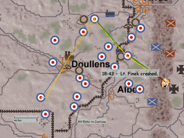 Porucznik walczył z francuzami przeciw bombowcom i przepadł za liniami wroga (moim zdaniem 1 mogli mu zaliczyć). Podporucznik Nedberry zginął, gdy KM z ziemi podpalił mu maszynę i musiał skakać. Tylko ja ocalałem...