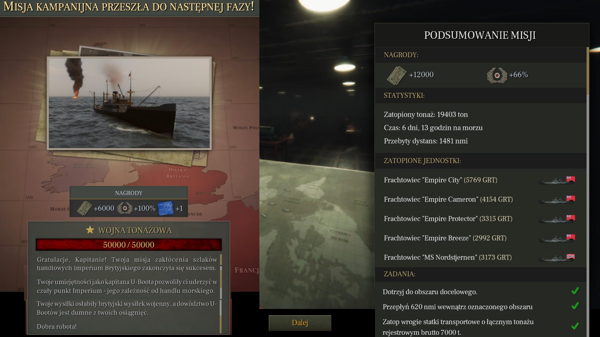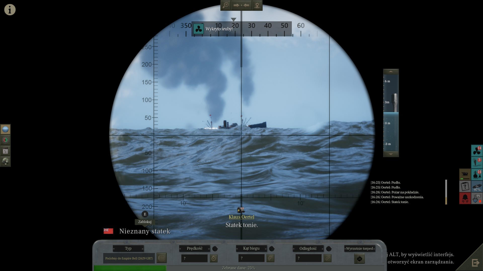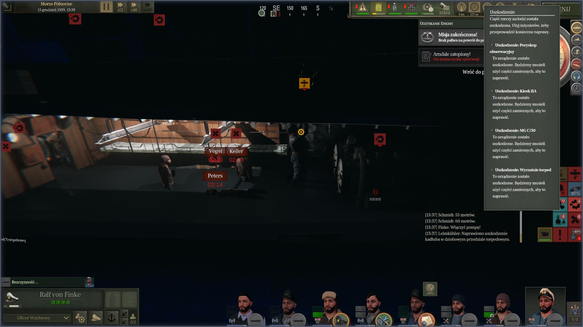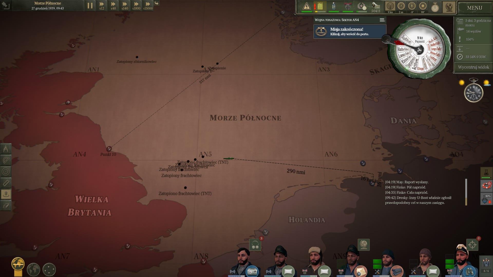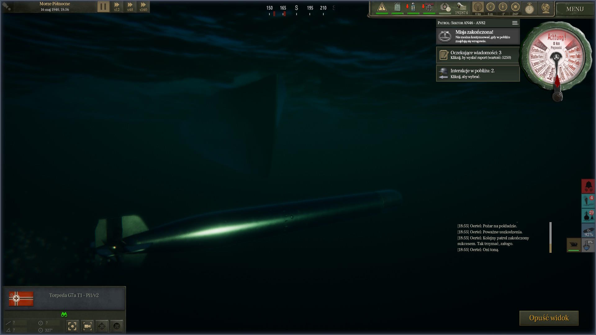Podporucznik Leimkummer ruszył na pokład jednostki i wrócił ze złymi wieściami. Wszyscy nie żyją. To cud, że okręt utrzymywał się na powierzchni... ale też i pech, bo Brytyjczycy mogą go znaleźć. Zatopiliśmy sojuszniczą jednostkę jedną torpedą i oddaliliśmy się tuż przed przybyciem sił ZOP, które prawdopodobnie szukały tego samego okrętu.