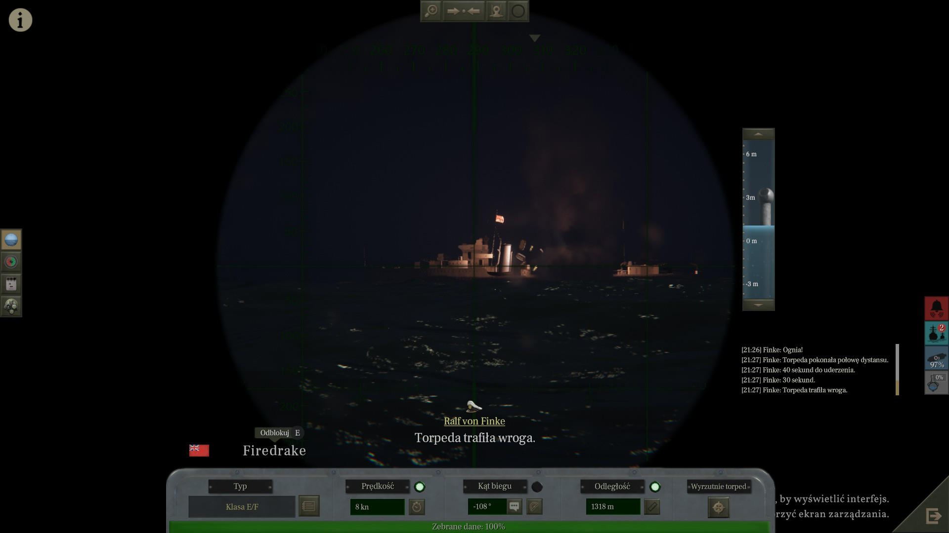 Aby wreszcie o 21:20 zaatakować cel. Wystrzelono do niego 3 torpedy