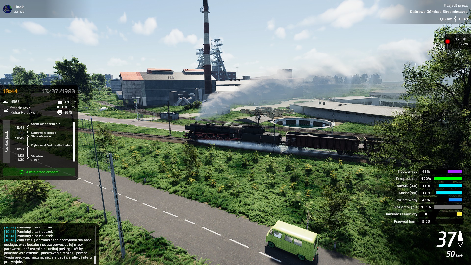 Palacz czy maszynista? Może palacz i eksplozja kotła? Nie... Maszynista... Ja trudny scenariusz (ilość wagonów)? Może średni na początek. Start. Zaczyna się dobrze. Uczą mnie obsługi, są pociągi AI. Zapowiada się dobrze