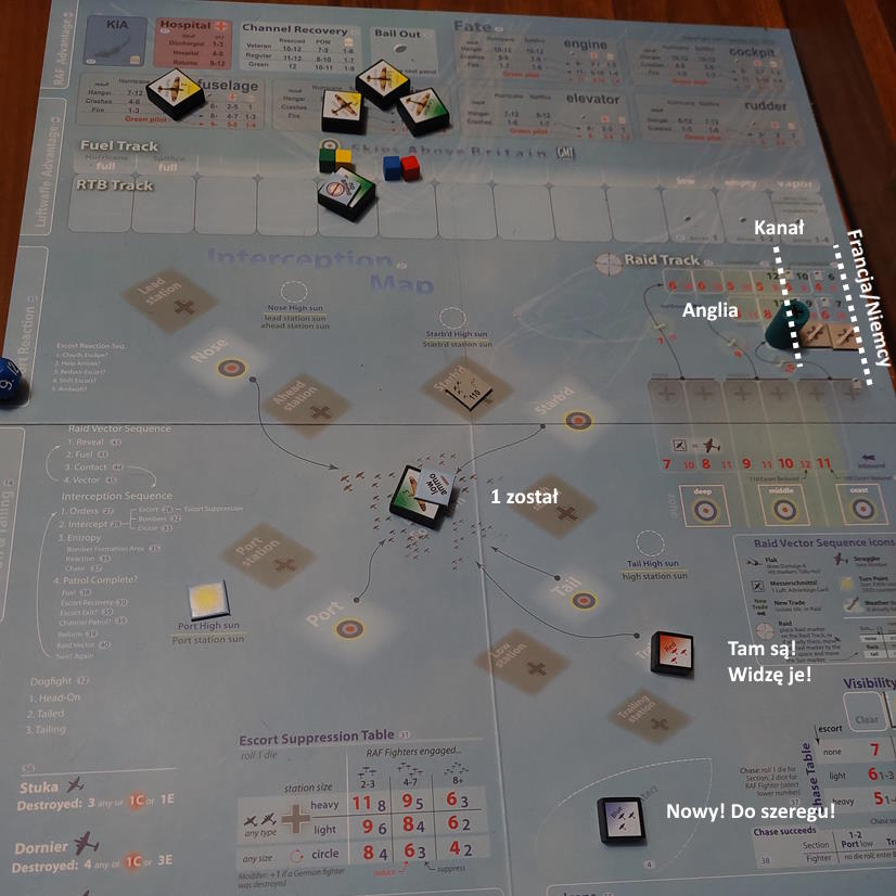 Czerwoni również nie próżnowali. Wymiana ognia trwała do ostatniego pocisku. Czerwony 2 oberwał, z silnika wystrzelił ogień. Pilot oderwał się od grupy, starając się uciec jak najbliżej Anglii. Po chwili zobaczyliśmy spadochron.. Oby to nasi go wyłowili...