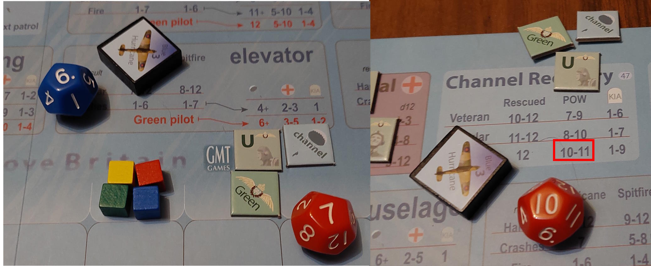 Przy podliczaniu 1 bombowiec podzielono na 4 części: Way, Turley-George, Cook i Deere (lider niebieskich i żółci)