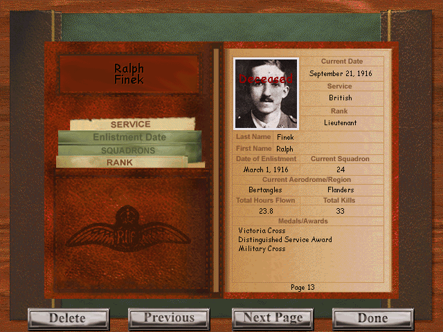 Ralph Finek dołączył do 24 Eskadry na początku jej formowania i w pierwszy lot poleciał 1 marca 1916. Wówczas misję uznano za nieudaną. Zestrzelono 2 Fokkery, kapitan Lancaster się rozbił, a Ralph zestrzelił te 2 samoloty... Dopiero później dowiedziano się, że w tym locie zestrzelił Maxa Immelmana i Oswalda Boelckego, czołowych asów Kaisera... Później zaczął pisać swój pamiętnik...