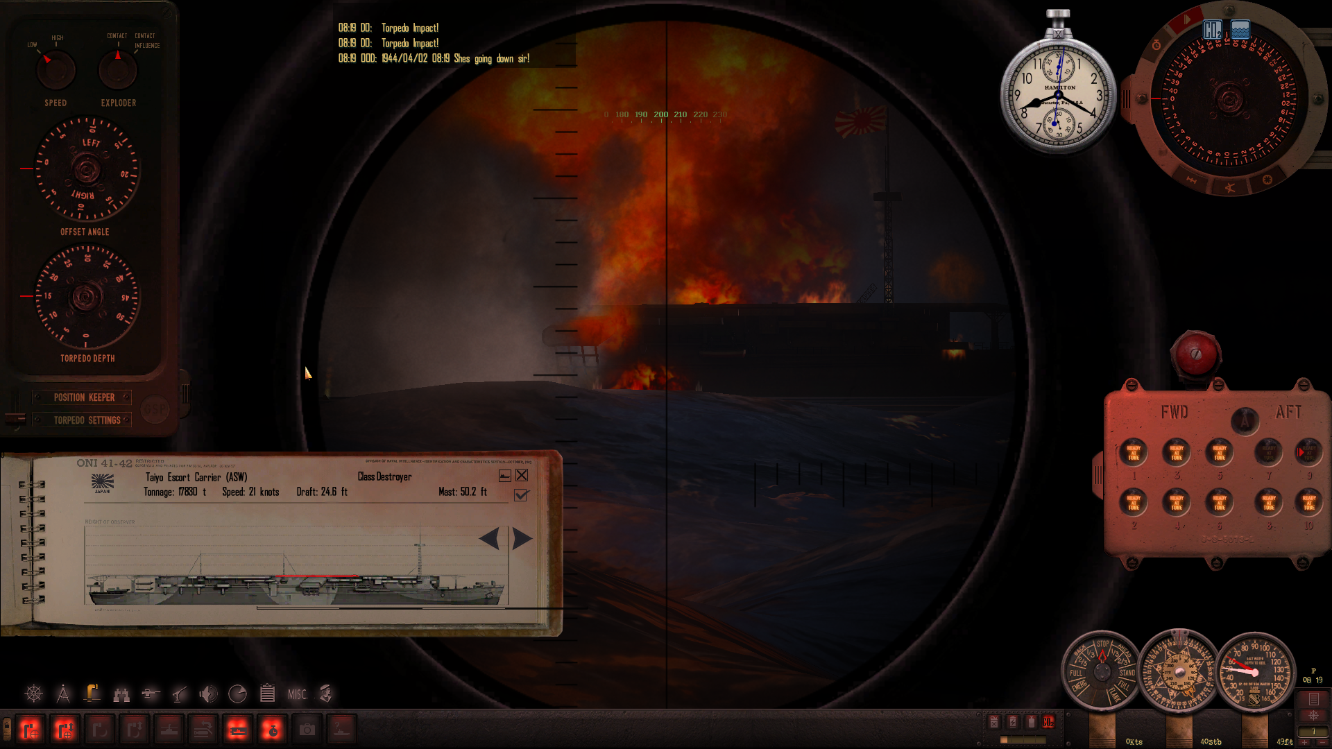Nie zapominam o poprawce Posejdona, a XO prosi o ponowne potwierdzenie ustawienia głębokości torped na 30 stóp.