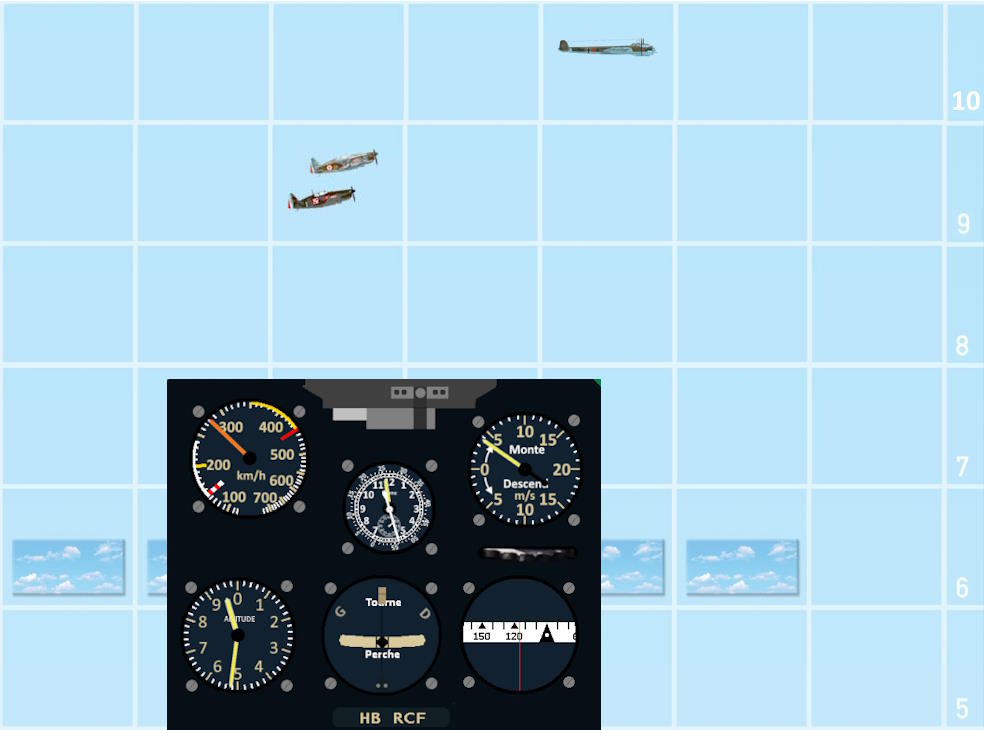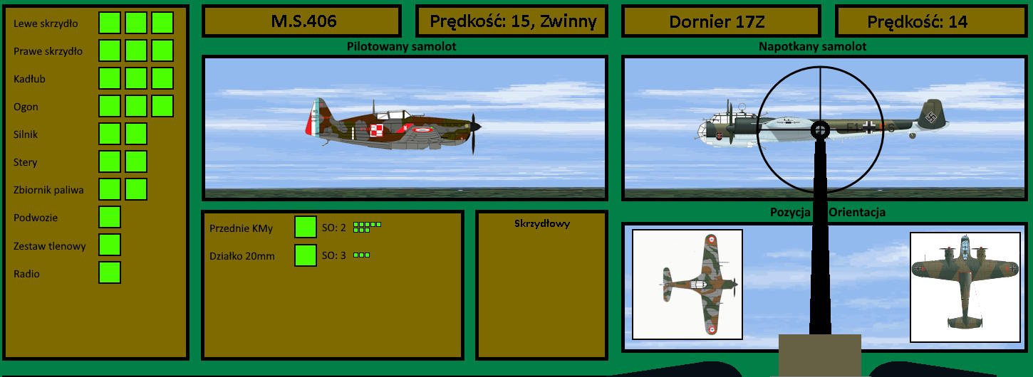 Wyrównujemy lot, by zwiększyć prędkość. I raportuję pozycję wrogiego samolotu. Jak się uda rozpędzić maszynę, to spróbuję zaatakować od spodu.
