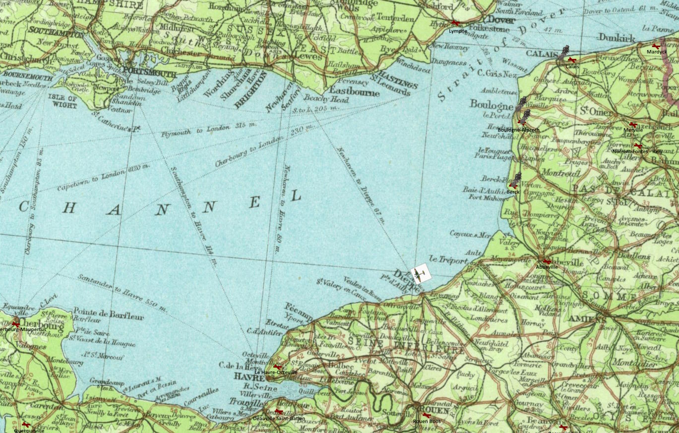 Gdy mijali Dieppe, Feliks poczuł się spokojniejszy. Zostawiali za sobą obszar do którego sięgała Luftwaffe. Tutaj zapuszczali się tak daleko w głąb Francji, że nie powinno być kłopotów. Wybrzeże wyglądało jakby wojna która była na wschodzie jeszcze się nie zaczęła. Jak na razie nawigator bez problemów rozpoznawał miejsca, choć prawdziwym testem będzie walka i odnalezienie się po długiej walce. Tymczasem teraz czekały ich łatwe do rozpoznania miejsca. Choćby Hawr, który mijali o 14:50. Jakby tego ujścia Sekwany nie rozpoznał jego nawigator, to zwątpiłby w niego.