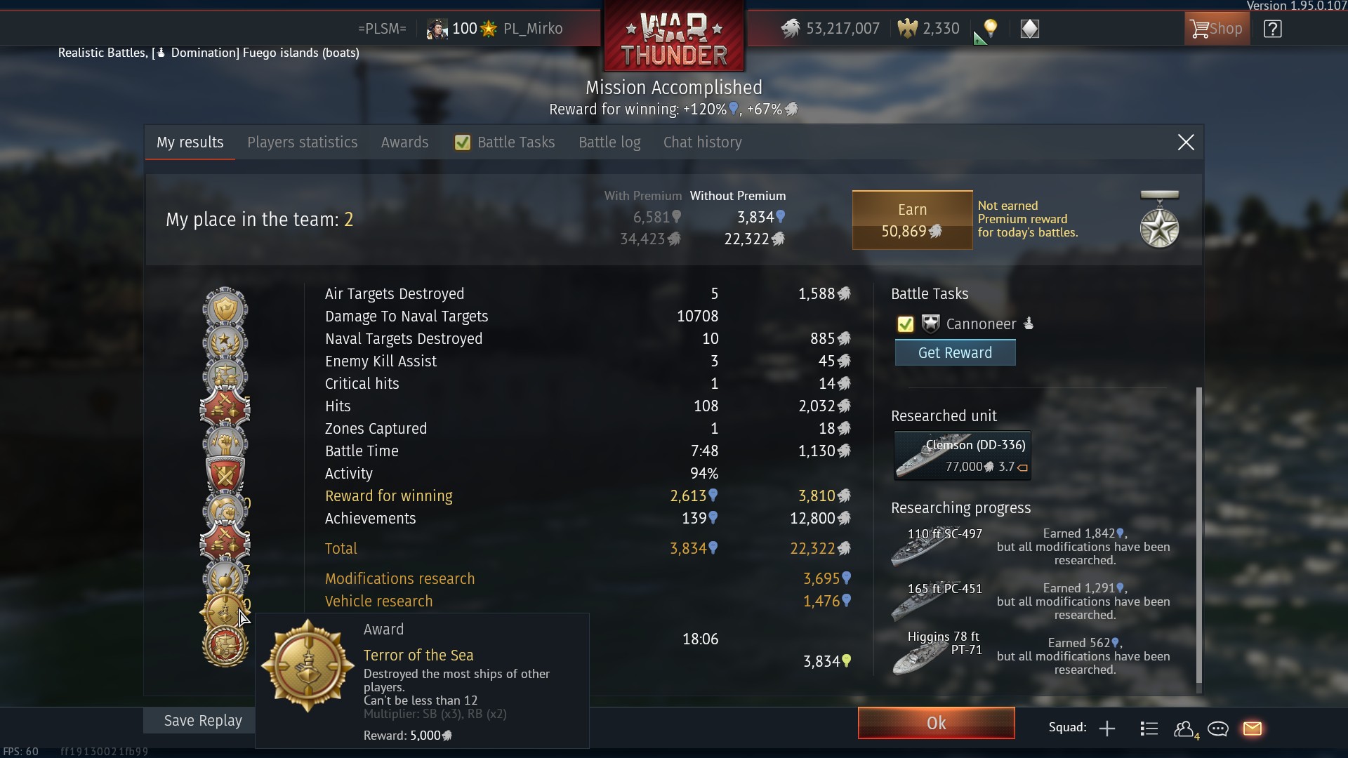 Podejrzewam, że nasze świetne wyniki mają związek z tym wydarzeniem Wojna Światowa: Sezon "Atak z morza" w którym można zdobyć jako nagrodę m. in. USS Phelps DD-360 (USA).