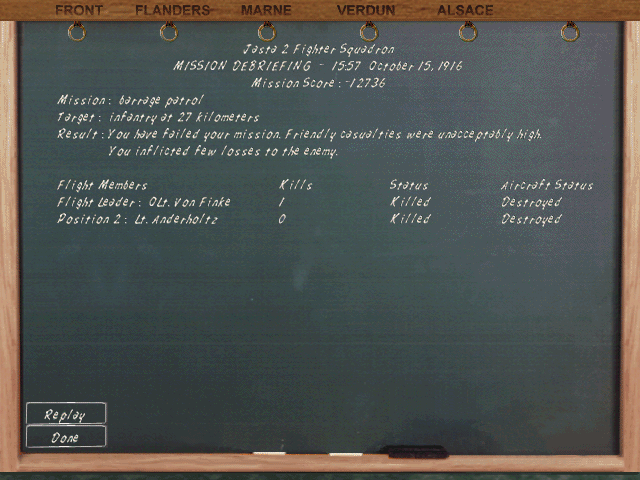 I znów w dowództwie to samo... Misja nieefektywna. Balon i 3 myśliwce zestrzelone (nie licząc pomocy Francuzom) za utratę 2 pilotów i maszyn... Niemcy stracili 3 bombowce za cenę 2 myśliwców Ententy!