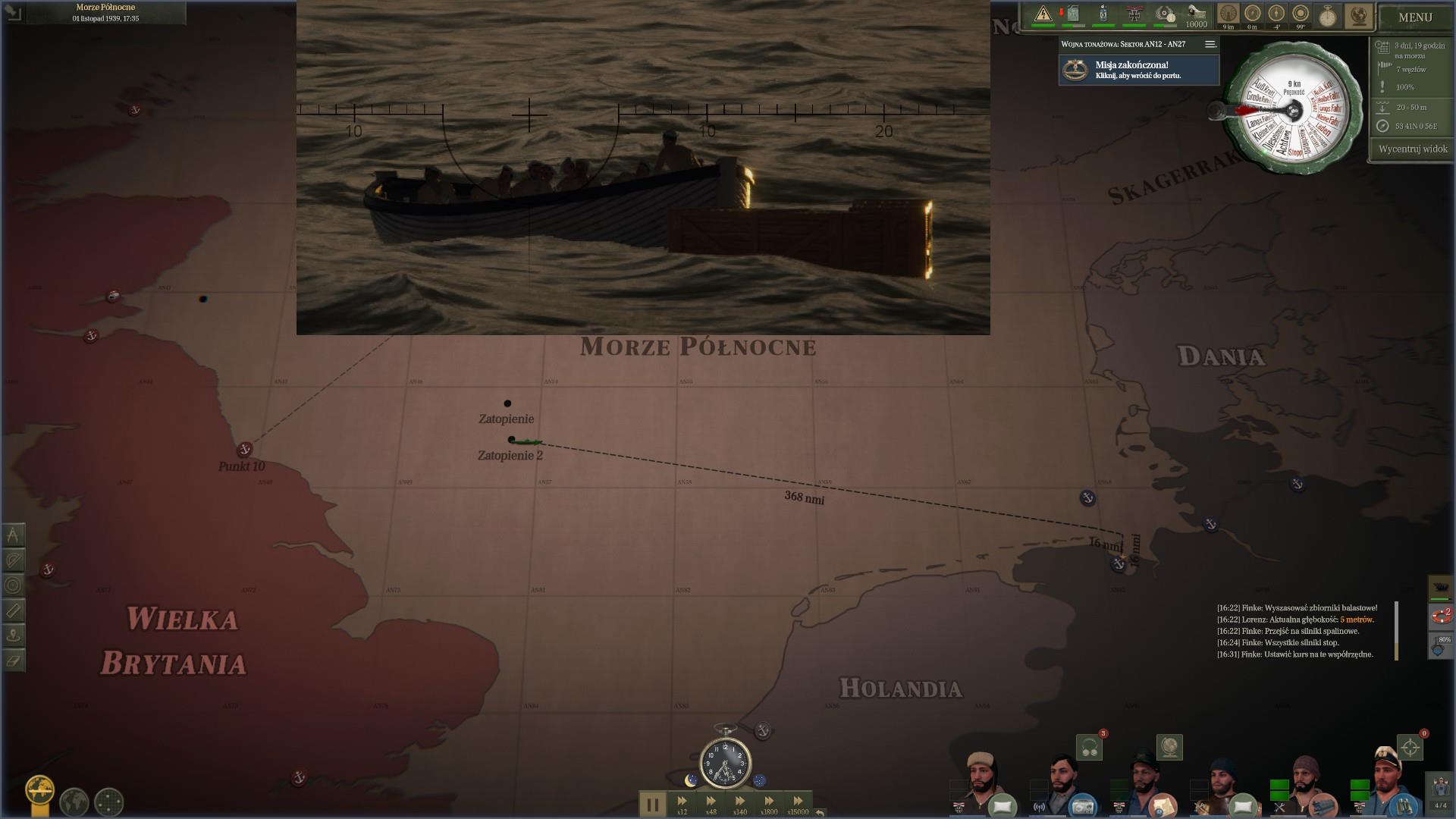Już zacząłem planować i liczyć ile paliwa możemy zużyć na polowanie na Północno Zachodnim podejściu, gdy nadeszła wiadomość z rozkazami. Wróg wykrył naszą misję i rozpoczął polowanie. Miałem natychmiast wracać do portu