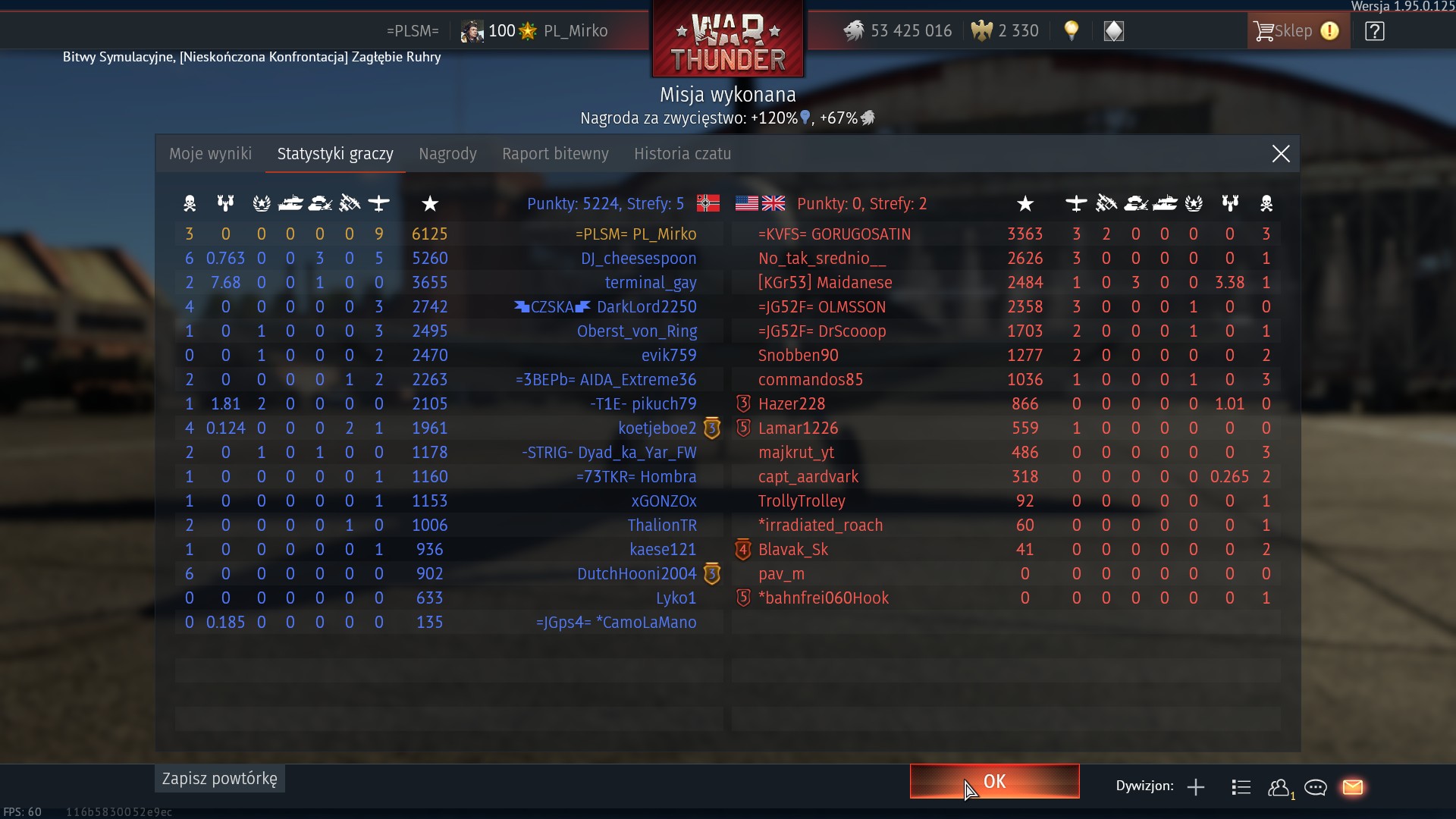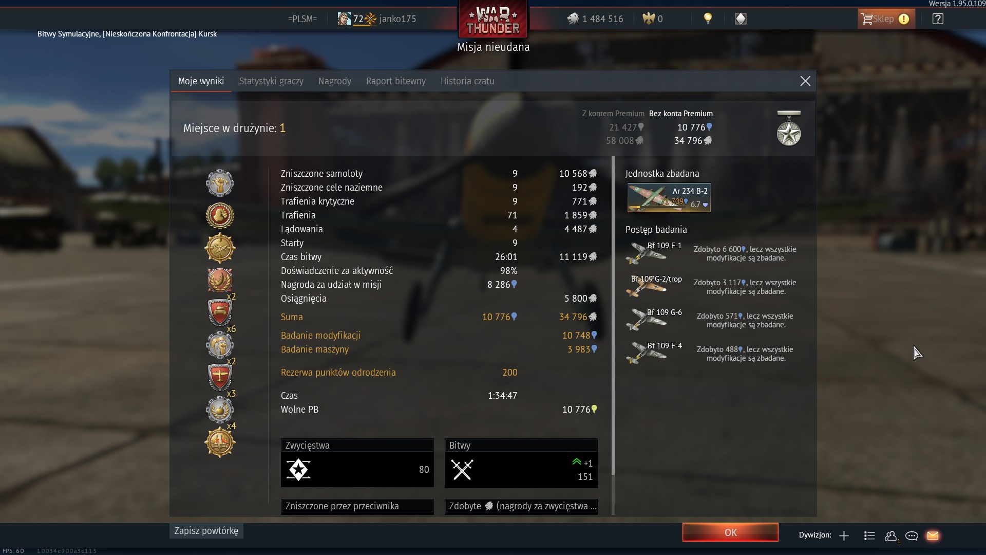 I najlepszy wynik poprzedniego tygodnia - niższy niż ten rekordowy z miesiąca lutego, ale też czas bitwy (SB Air 3 tier) krótszy o ponad godzinę. Poza tym K/D 3:1 to jak dla mnie spore osiągnięcie - zwykle standard dla mnie to K/D 1:1. Po dłuższej przerwie do zestawu GER#3 wróciły Foczki i nawet wersja A-1 okazała się najskuteczniejszą. Tylko jedno rozbicie