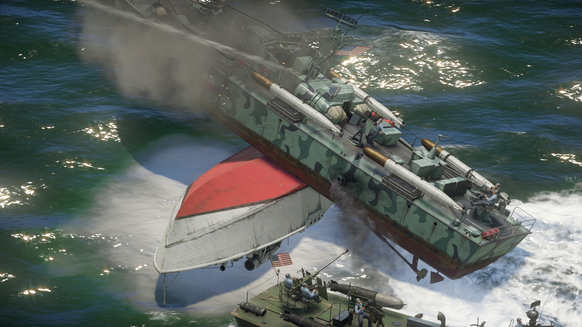 USS Lichtfield przechylał się coraz bardziej. Ogień opanował się częściowo sam, jednak cały czas groziło zatonięcie...