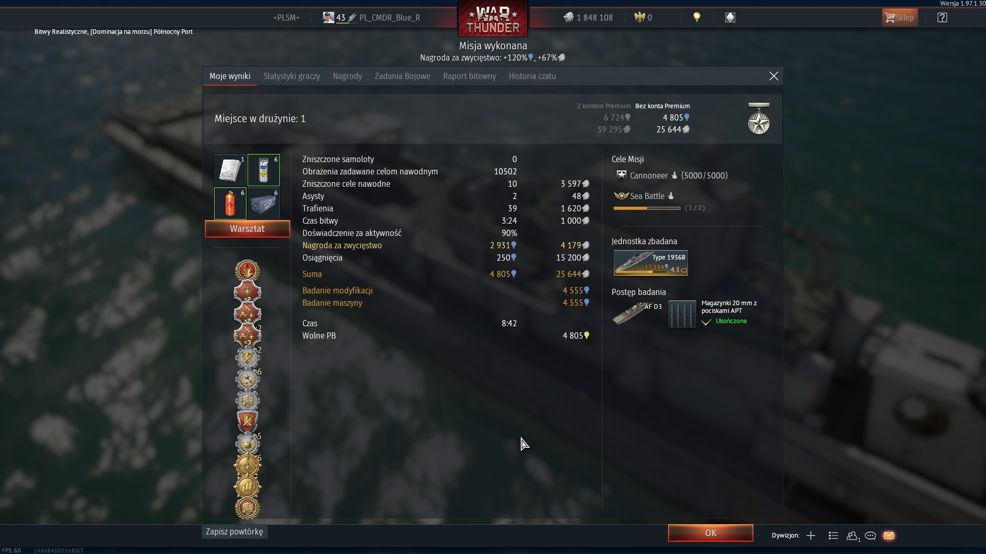 Więc gra mając 8 graczy powyżej 3.0, drużynę 4.0 (nas) wzięla do jednej strony, graczy 3.7 więcej do drugiej. Tylko my mieliśmy szczęście, że nam jednego gracza z DD wyrzuciło... Choć patrząc na to, że poza nami wróg wymiatał wszystkich (sporo było graczy z okrętami 1.0-2.0 oraz... szarą gąską 3.0)... To kłopotem okazali się dla drugiej storni gracze z wysokim BR, ale bez niszczycieli.. Evo. Swoim LCS wymiótł nieźle.. 6 naszych zabił... Tylko potem nie miał możliwości poradzenia sobie z niszczycielami... Choć wrogie lotnictwo dwa z nasze niszczyciele zatopiły z drugiej strony...