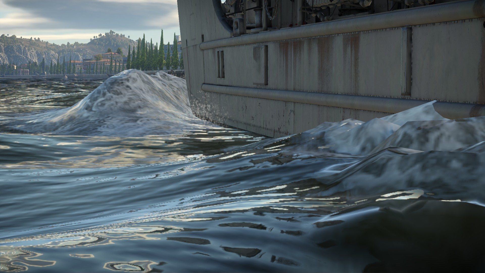 Okazało się, że nie tylko ona przybyła.. Przybyli też wrogowie. O ile nasza flota miała sama zająć się problemem, my mieliśmy osłaniać okolice portu, aby wrogie kutry i patrolowce się nie ukazały. Ruszyliśmy na pełnej mocy....