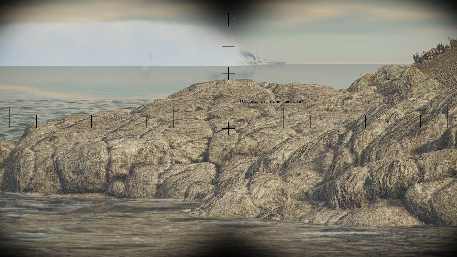 Jednak wiedzieliśmy, że zaraz za tą wyspą czai się wróg... Działa były w gotowości... I wreszcie pierwszy dozorowiec wychylił się... Pewny, że po pokonaniu pierwszej fali mają chwilę odetchnięcia...