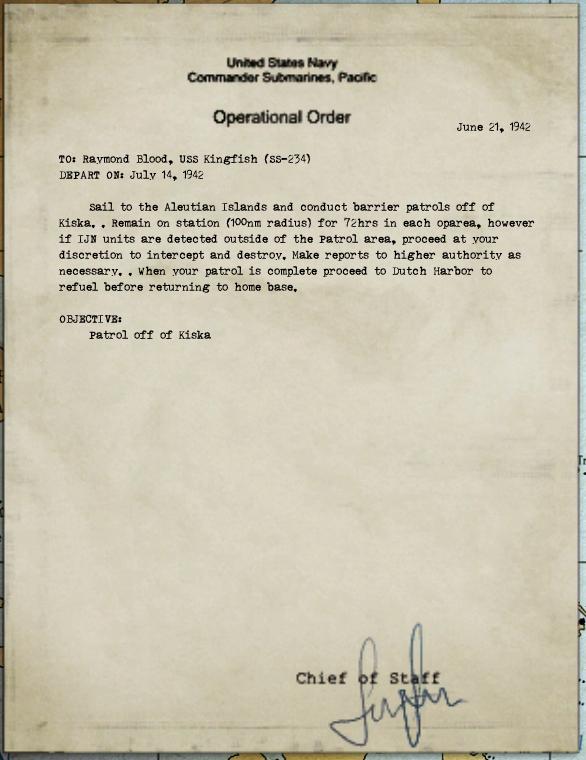 A więc otrzymałem nowy okręt. USS Grayling poszedł na remont kapitalny i raczej nie wróci prędko do służby. Więc trzeba od nowa szkolić załogę i prosić się o części usprawniające okręt. Trwa bitwa o Midway. Dostałem zadanie by zablokować wroga na wschód od wyspy. Miałem być na miejscu przed 3 czerwca. Nie było z tym żadnego problemu.