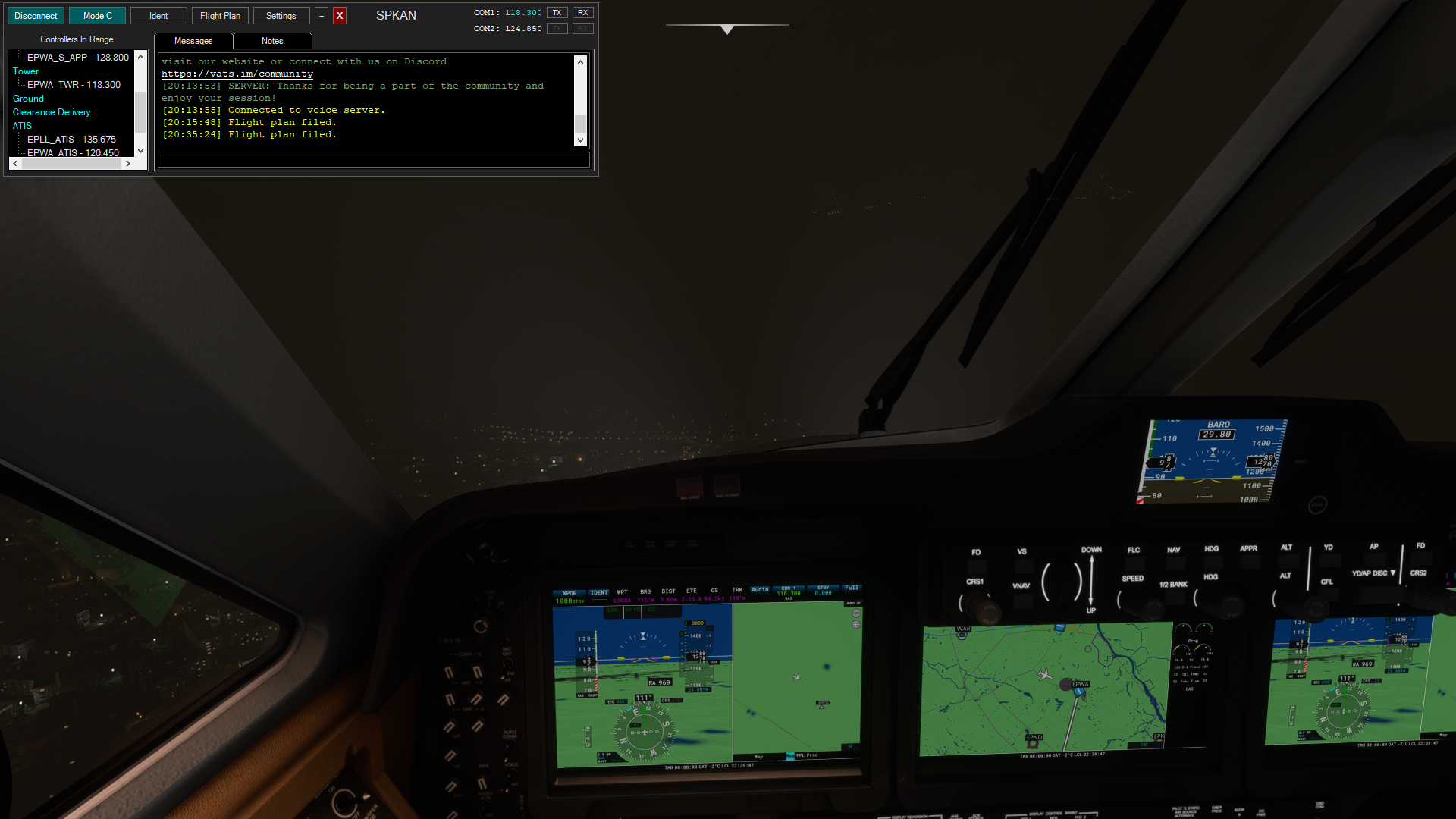 -VATSIM. Zacząłem sobie tam latać. Fajnie tak z kontrolerami na żywo polatać. Fabio zrobił kiedyś stream z takim jednym Garym z UK co był kontrolerem na bardzo spokojnym obszarze. Jakieś wysepki Jersey między UK i Francją żeby jak ktoś chce po lekku wejść w świat VATSIM to bez dużego ruchu i z kimś znajomym kto wie, że będą głównie piloci robiący pierwszy lot no to wziąłem i poleciałem :D Poza mną się ino jeden jeszcze odważył :lol No i fajnie było, będę latał często. No ale żeby korzystać z większych lotnisk, które zwykle mają kontrolerów lotu to trzeba mieć raczej szybszy samolot. Zwykle to większe odrzutowce, ale taki Beechcraft King Air 350i też może być jak nie będzie masywnego ruchu :)