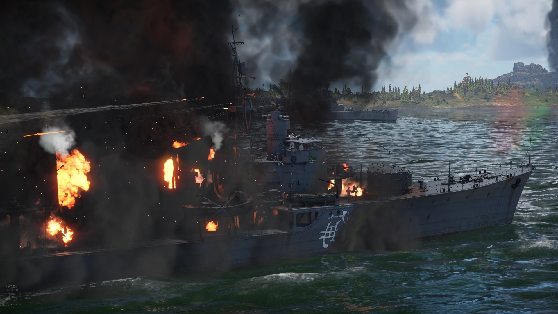 Widząc kryjący się w dymie okręt nieprzyjaciela - japoński dowódca postanowił zaatakować z bliska, jak najszybciej skracając dystans do celu.